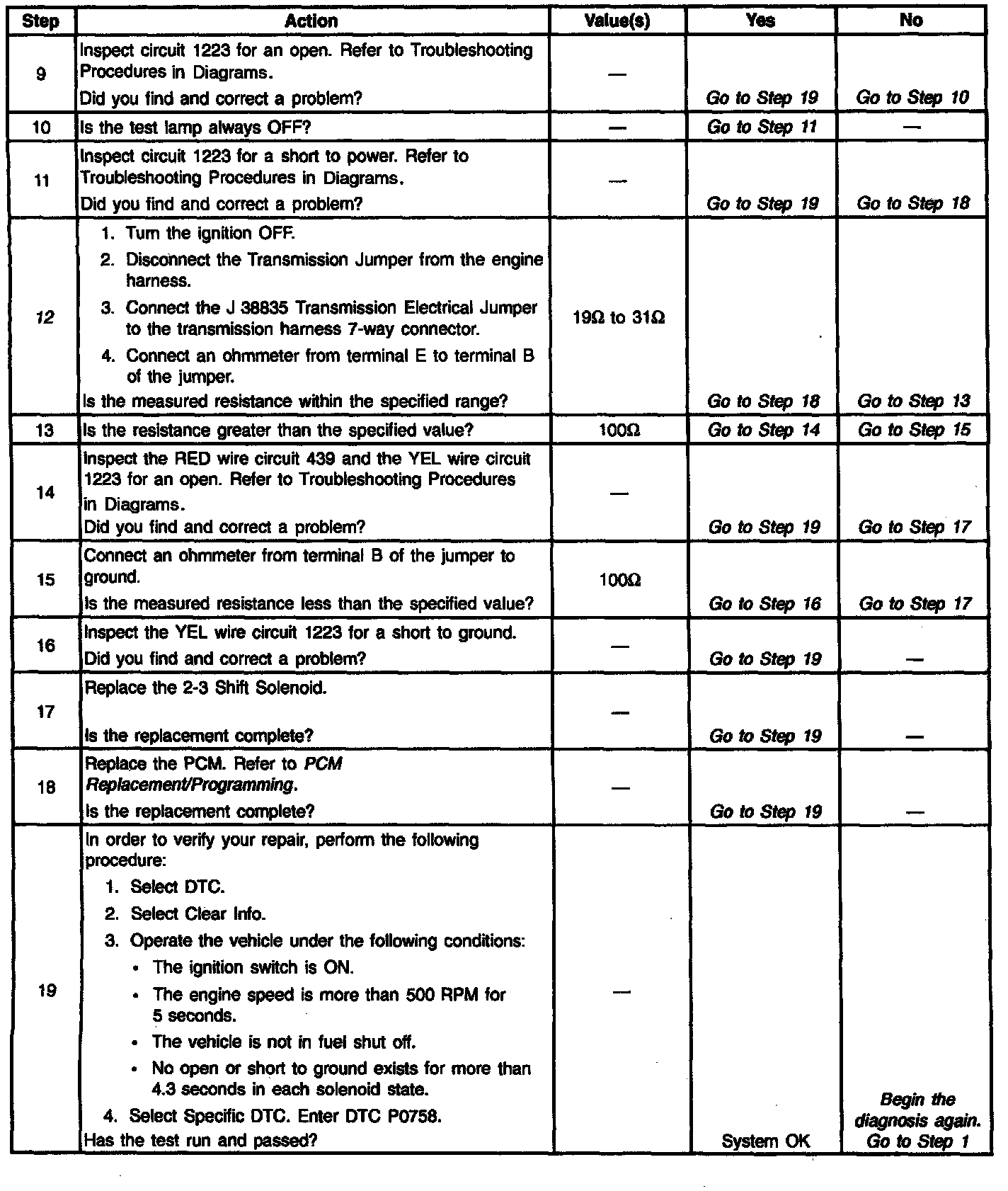 12. This Step verifies that the 2-3 solenoid is not shorted across its windings nor increased its resistance.