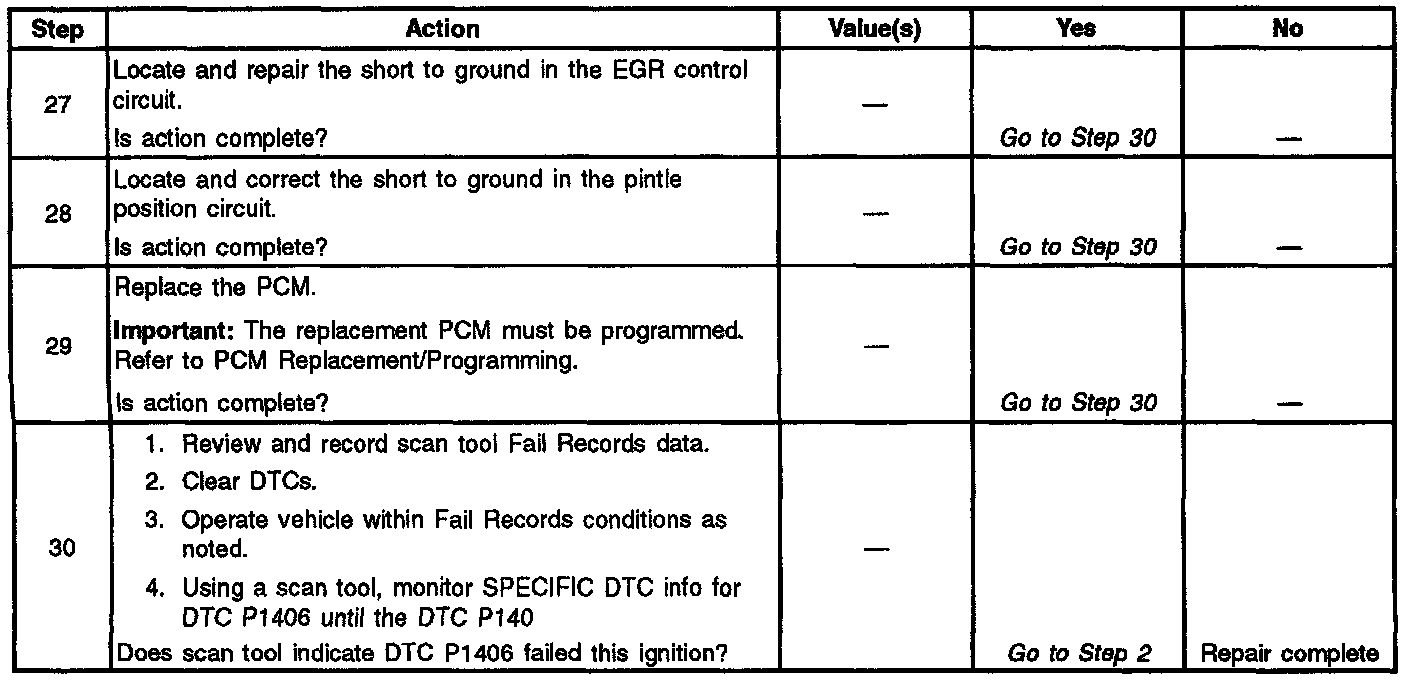 The PCM monitors the EGR valve pintle position input to ensure that the valve responds properly to commands from the PCM and to detect a fault if the pintle position sensor and control circuits are open or shorted. If the PCM detects a pintle position signal voltage outside the normal range of the pintle position sensor, or a signal voltage that is not within a tolerance considered acceptable for proper EGR system operation, the PCM will set DTC P1406.
