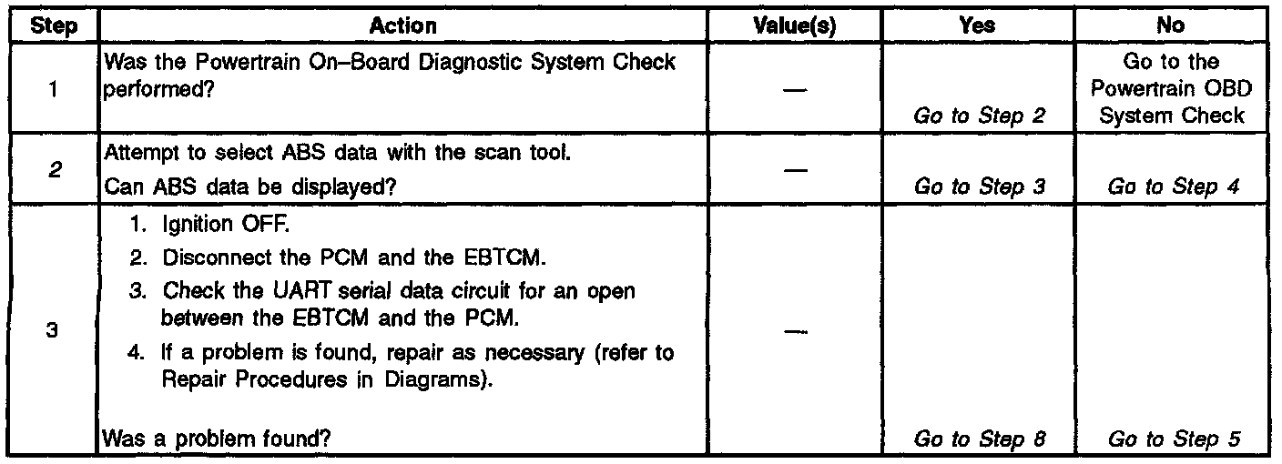 ^ The PCM will not be able to communicate with the EBTCM. This will cause the EBTCM to set ABS DTC 75, disable traction control, and illuminate the TRACTION OFF lamp.