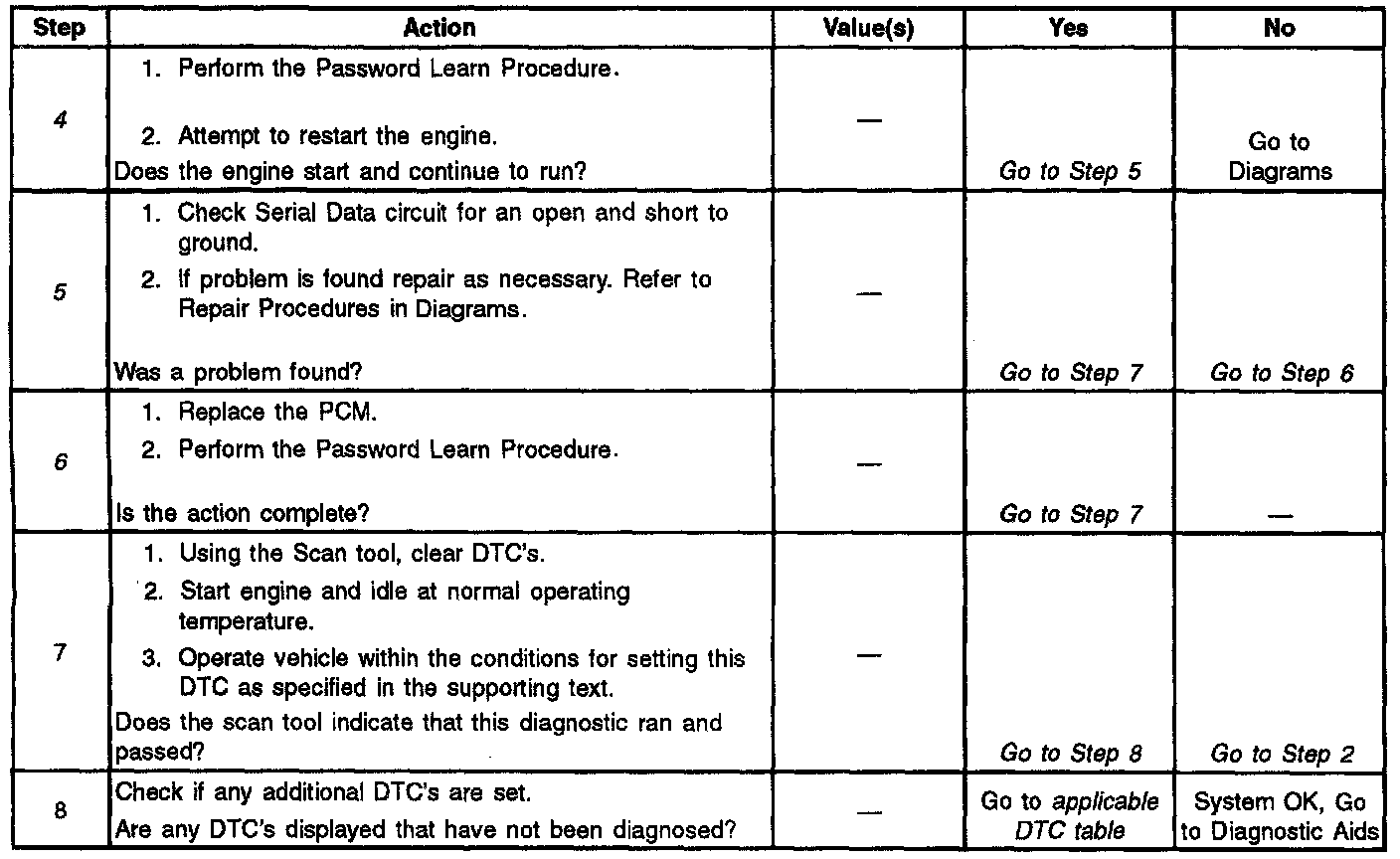 Number(s) below refer to the step number(s) on the Diagnostic Table