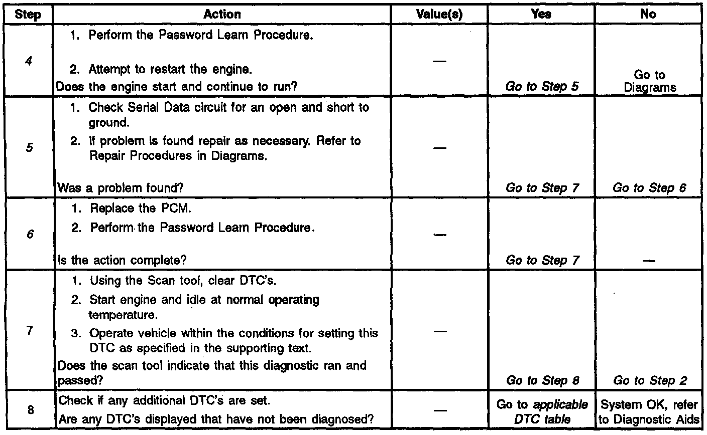 Number(s) below refer to the step number(s) on the Diagnostic Table