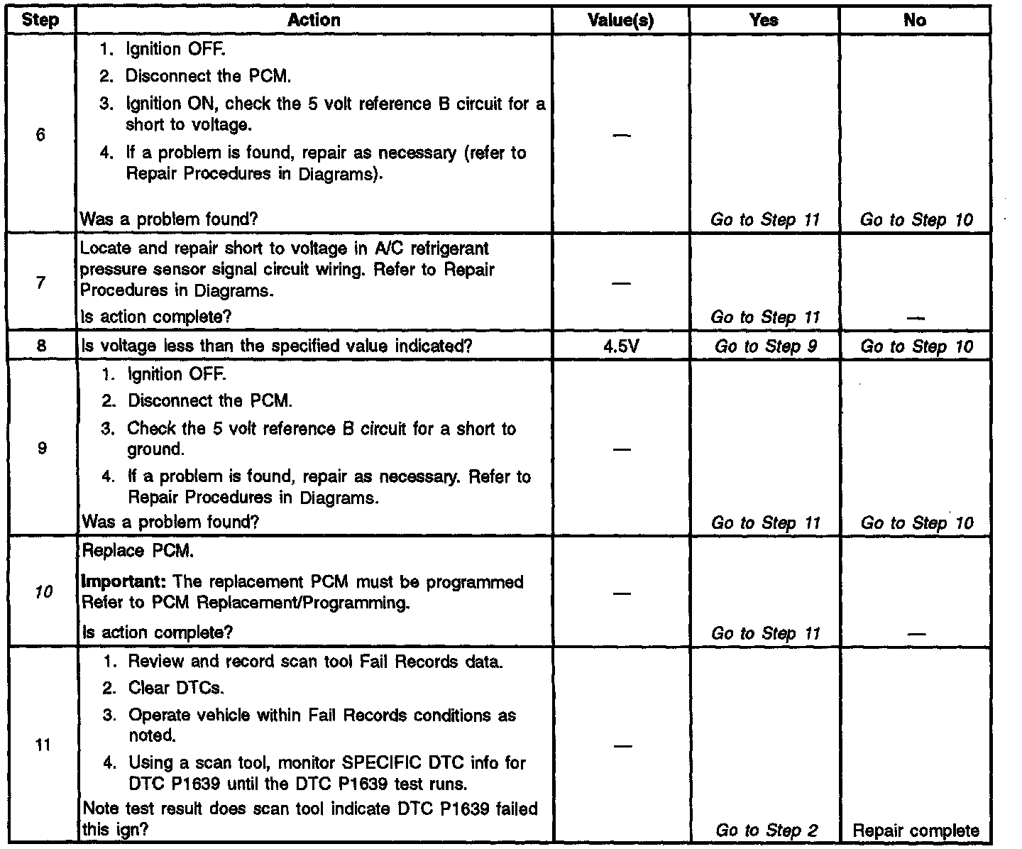 The PCM uses the 5 Volt Reference B circuit as a sensor feed to the A/C Refrigerant Pressure Sensor. The PCM monitors the voltage on the 5 Volt Reference B circuit. If the voltage is out of tolerance, the PCM will set DTC P1639.