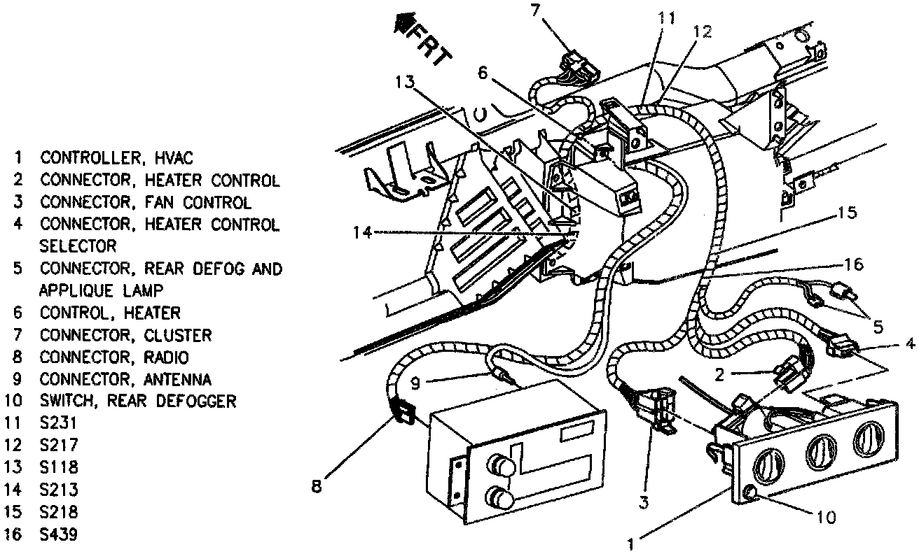 Center I/P Near HVAC Control Assembly: