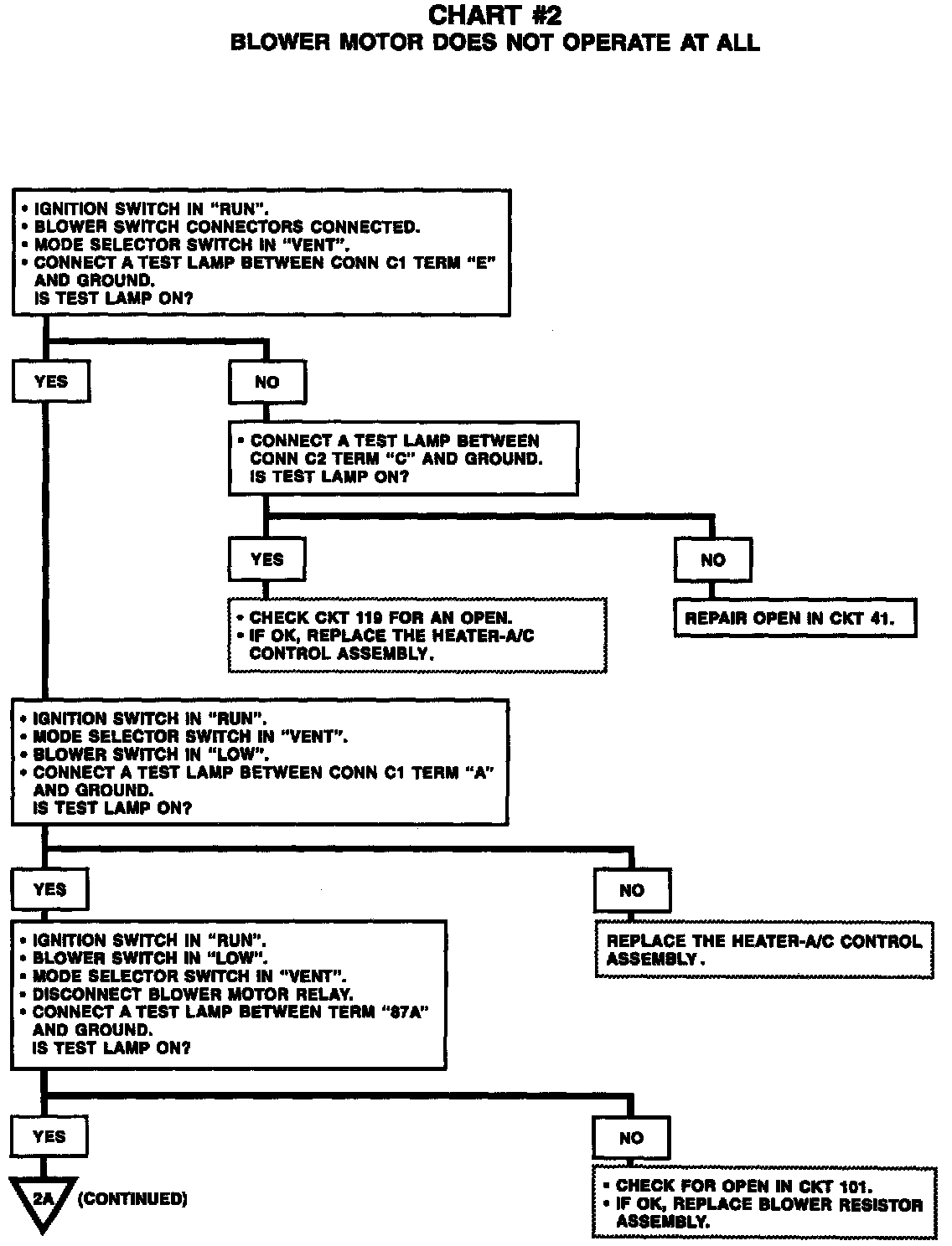 Chart #2 Blower Motor Does Not Operate At All (Part 2 Of 2):