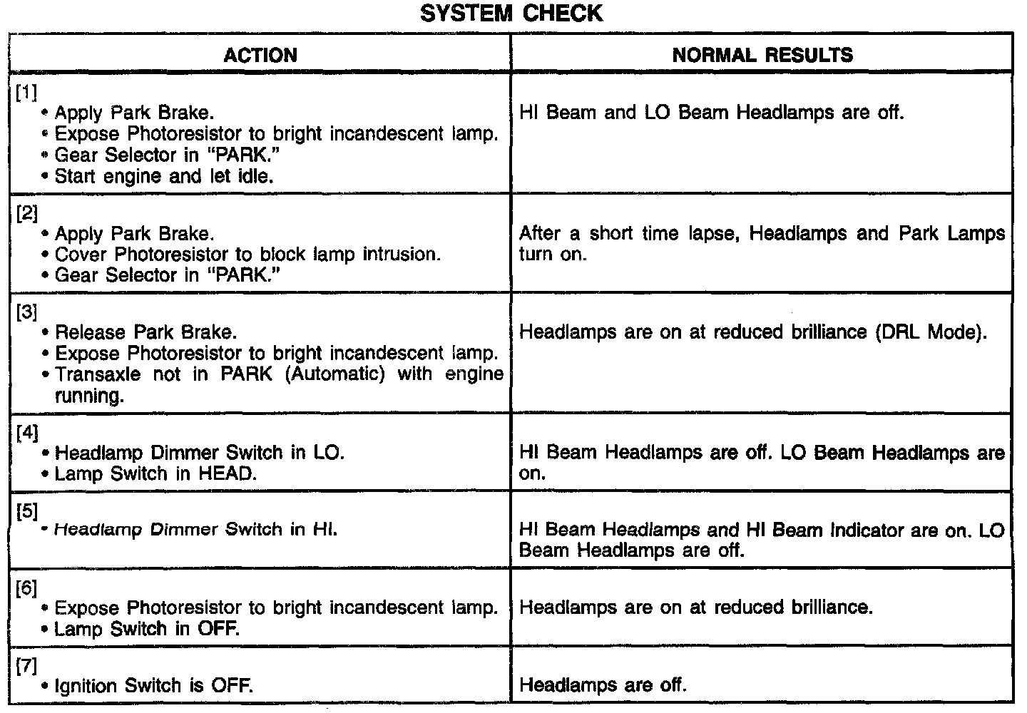 System Check: Without Fog Lamps: