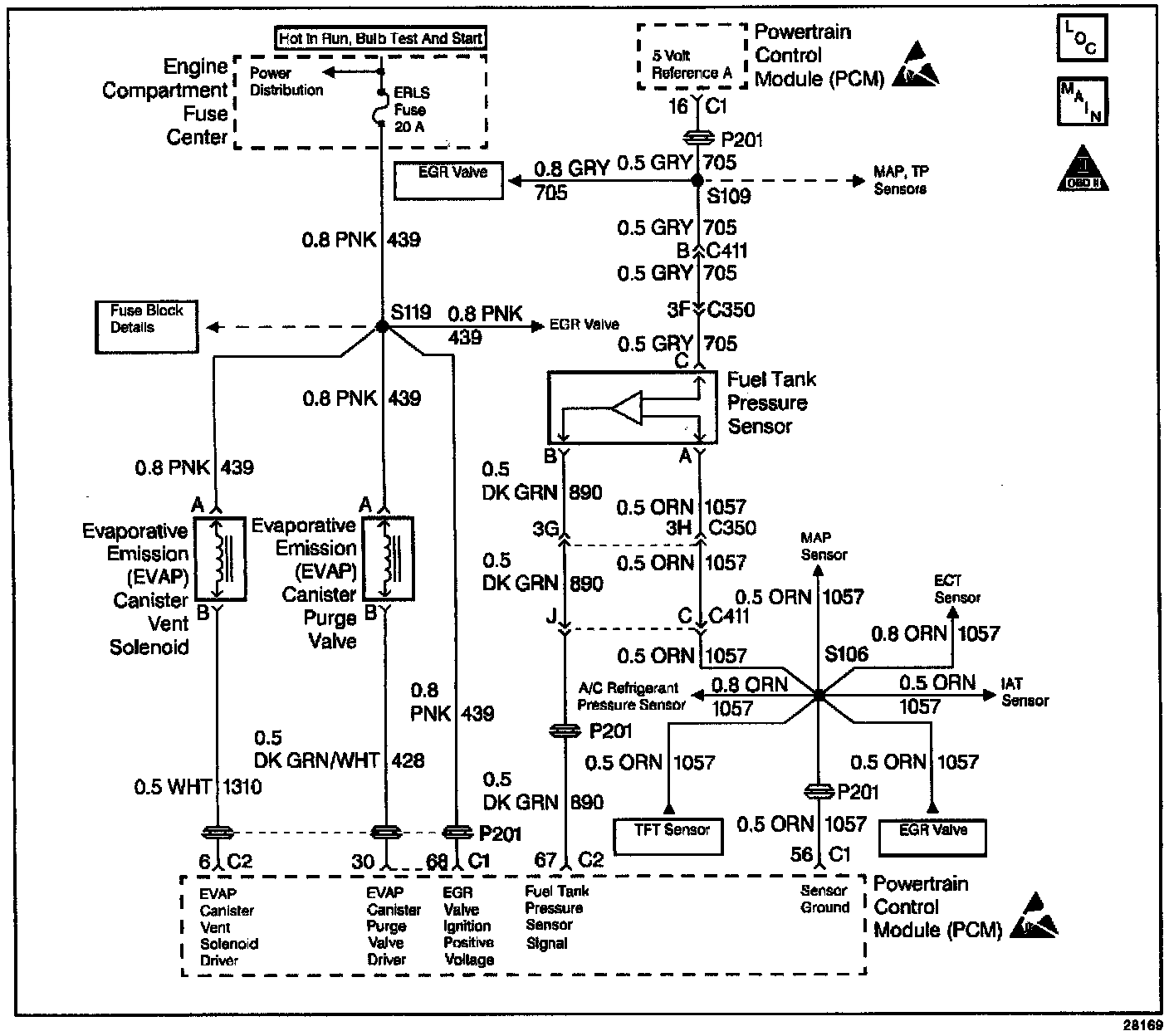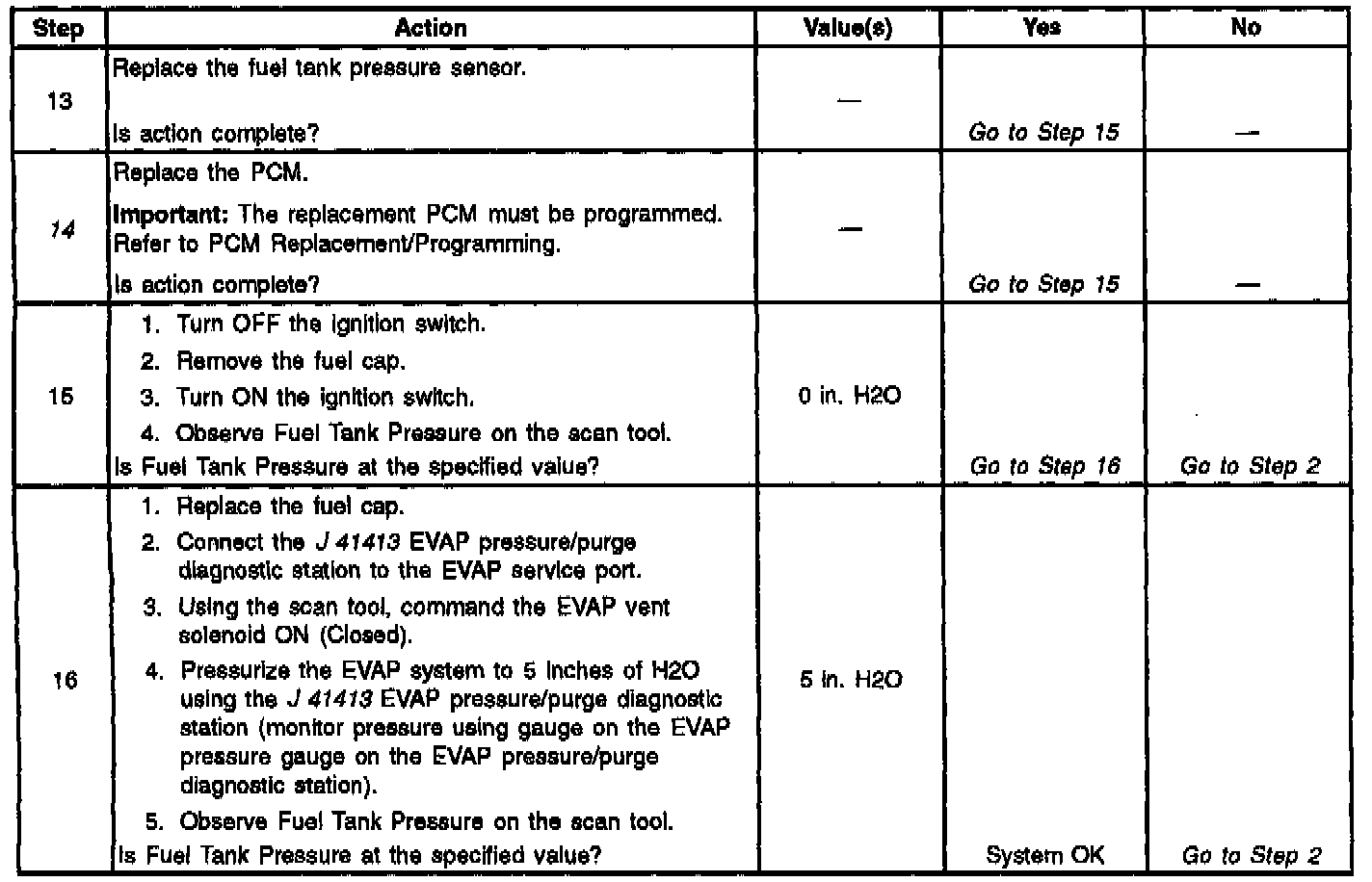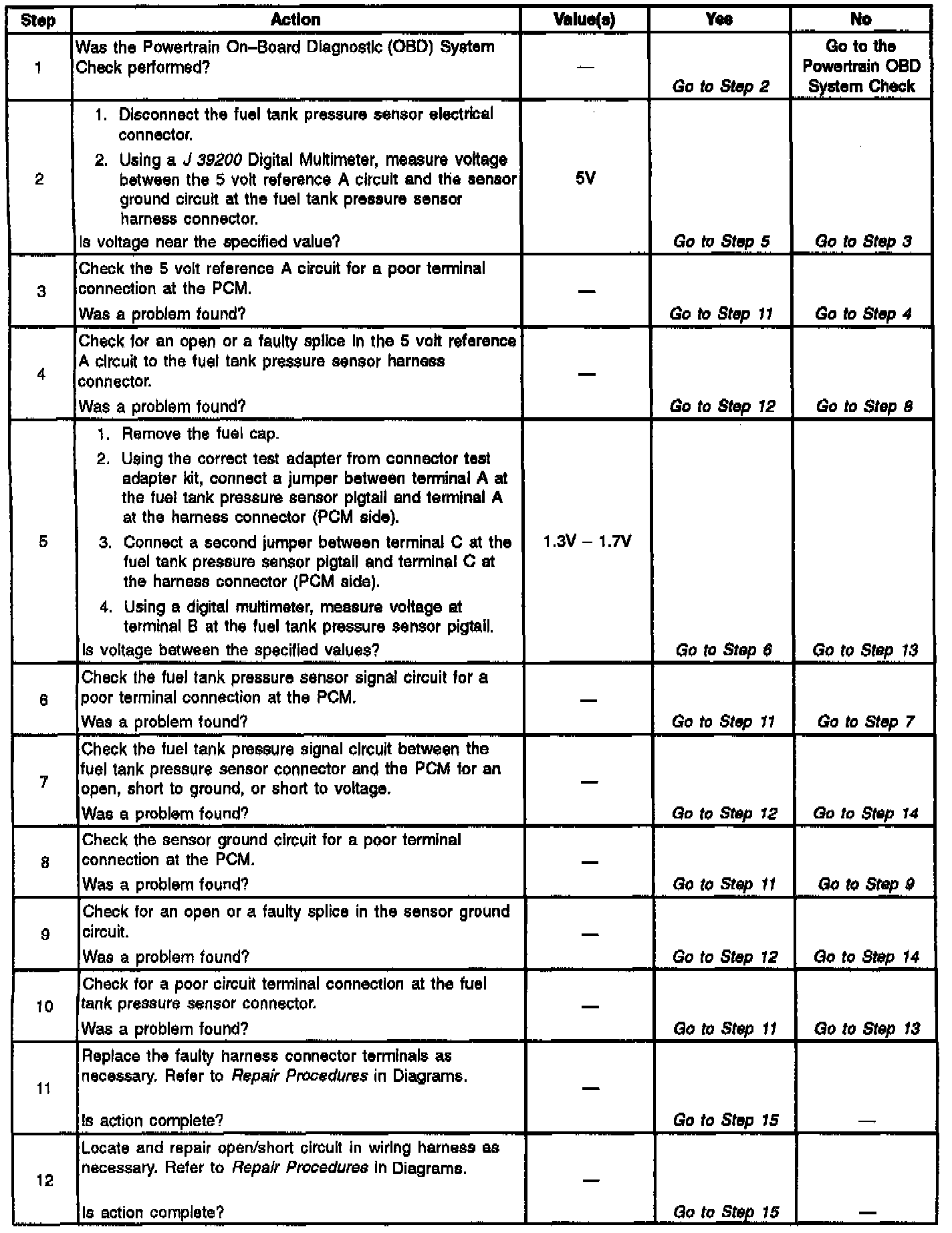 The Fuel Tank Pressure Sensor Diagnosis table is intended to isolate and diagnose electrical problems with the sensor wiring or the sensor.