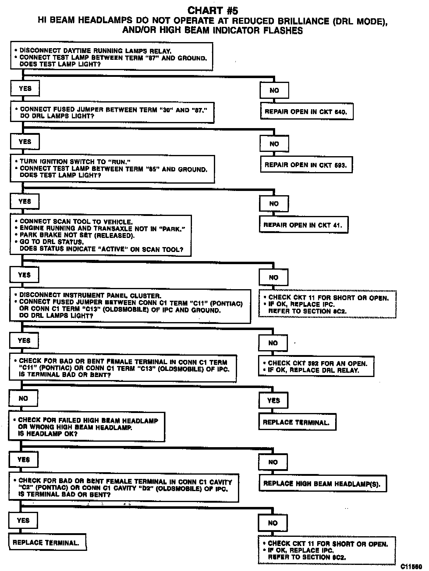 This bulletin is being issued to revise the daytime running lights diagnostic Chart # 5 on page 8A-102-9 of the 1996 and 1997 Service Manuals.