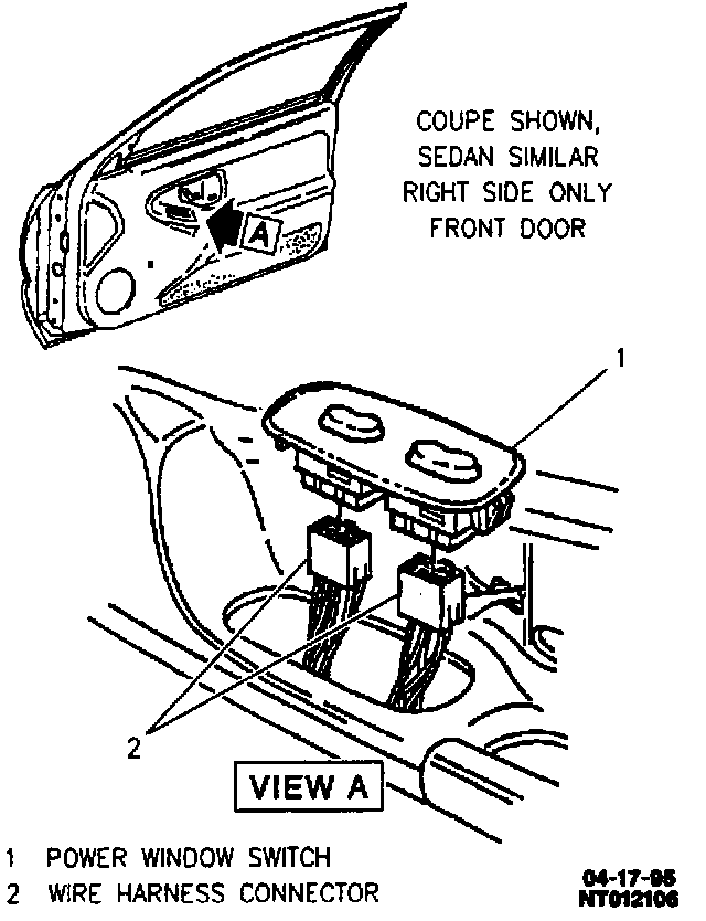 1. Pry at top of power lock and window switch bezel using a flat blade screwdriver.
