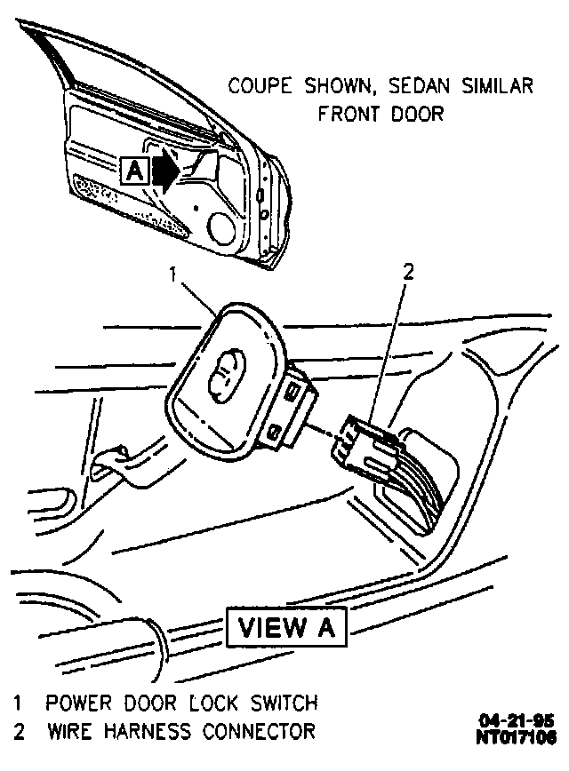 1. Pry tabs at side of power door lock switch with a flat blade screwdriver.
