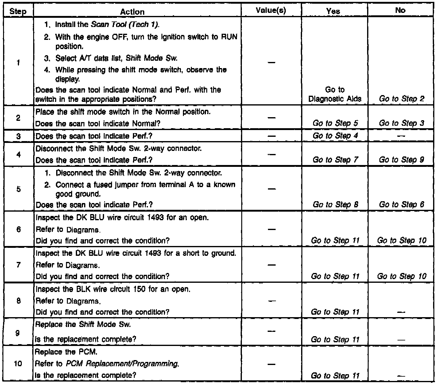 9. This Step replaces the shift mode switch. Previous Steps verified that the power circuit and ground circuit are not open or shorted to ground.