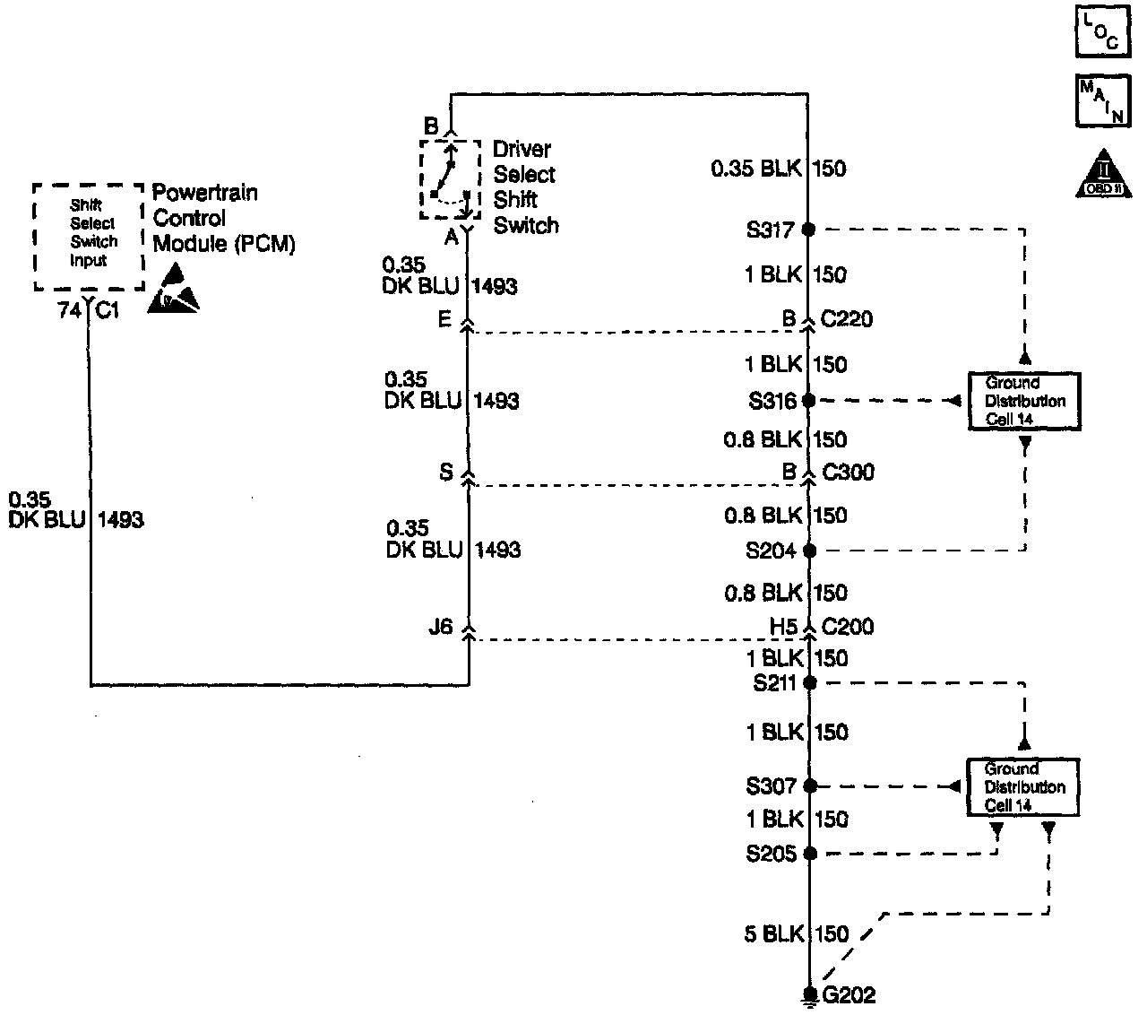7. This Step inspects the DK BLU wire circuit 1493 for a short to ground if the scan tool displayed Perf.