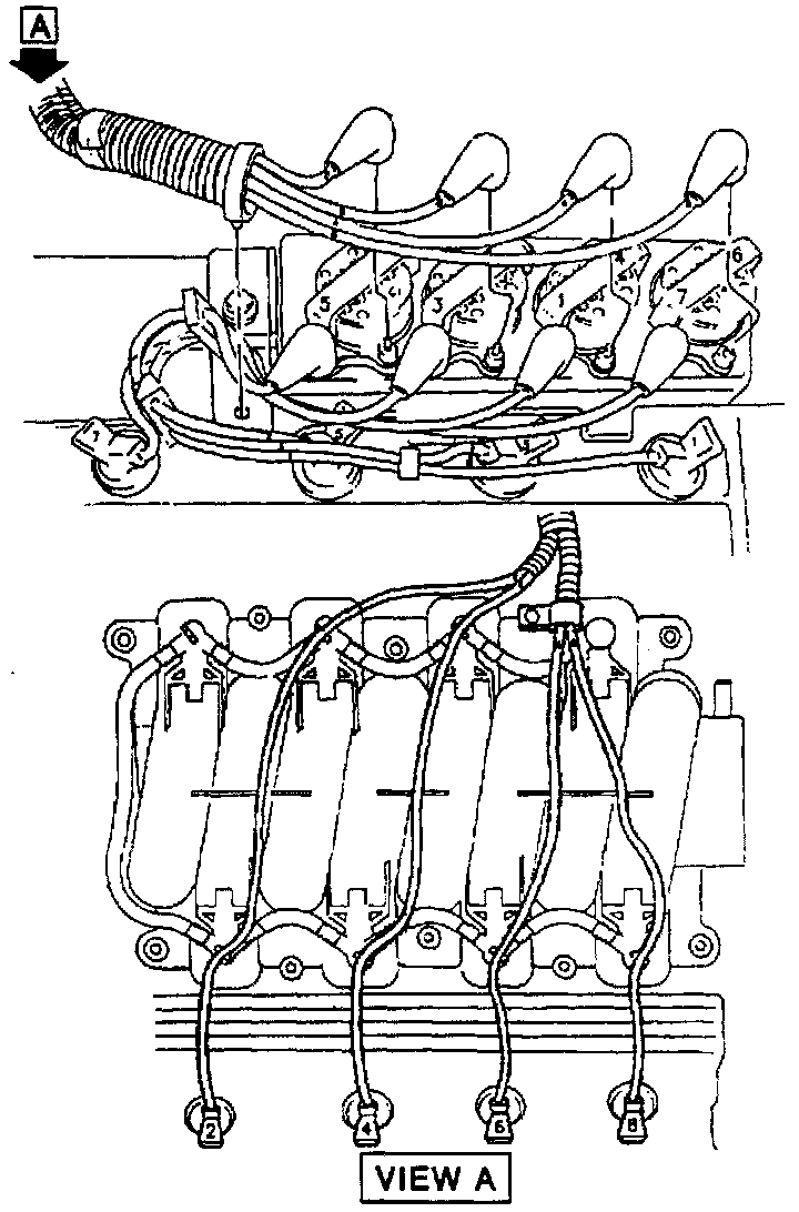 2. Plug wires to proper position, use position reference noted during removal procedure.
