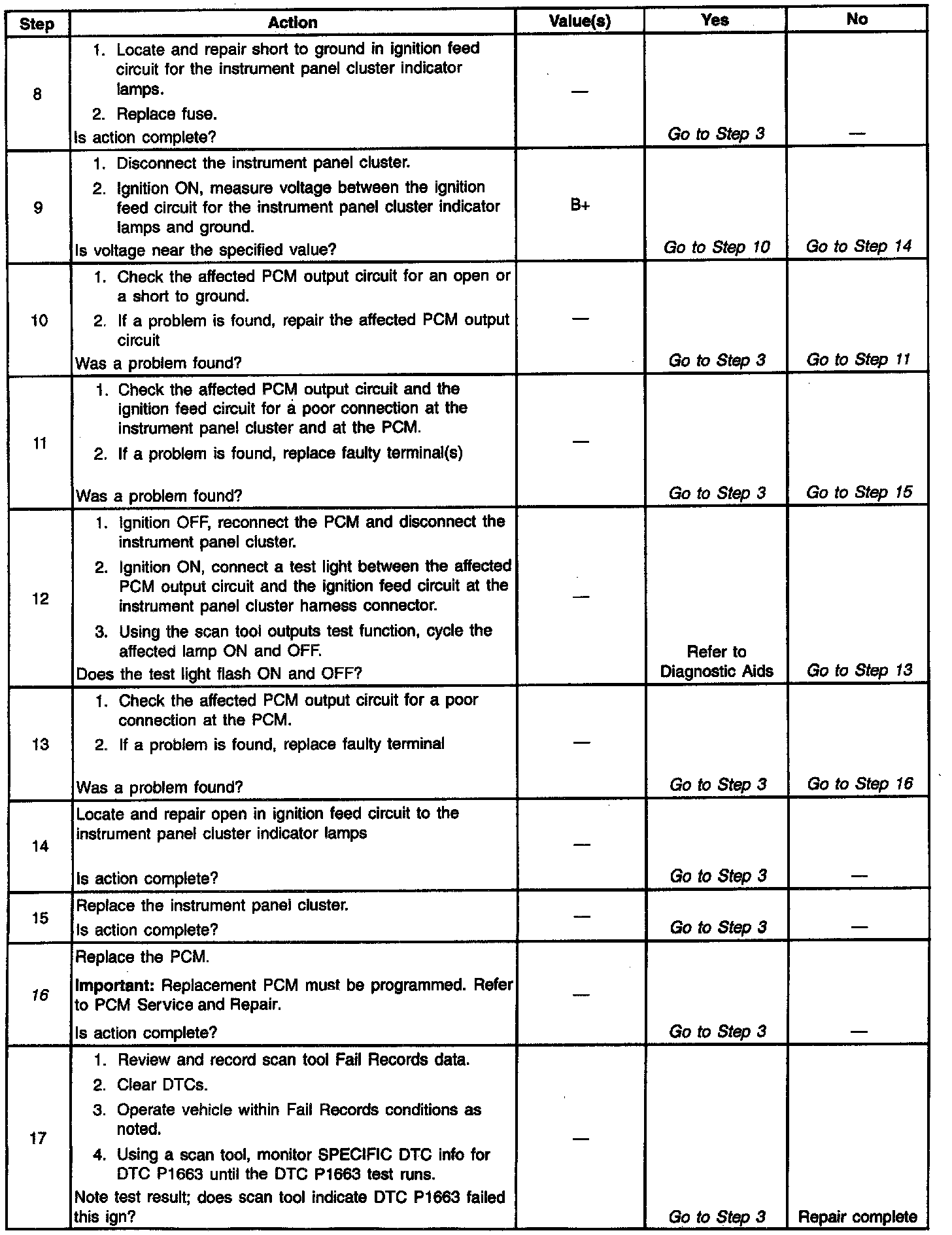 Number(s) below refer to the step number(s) on the Diagnostic Table.