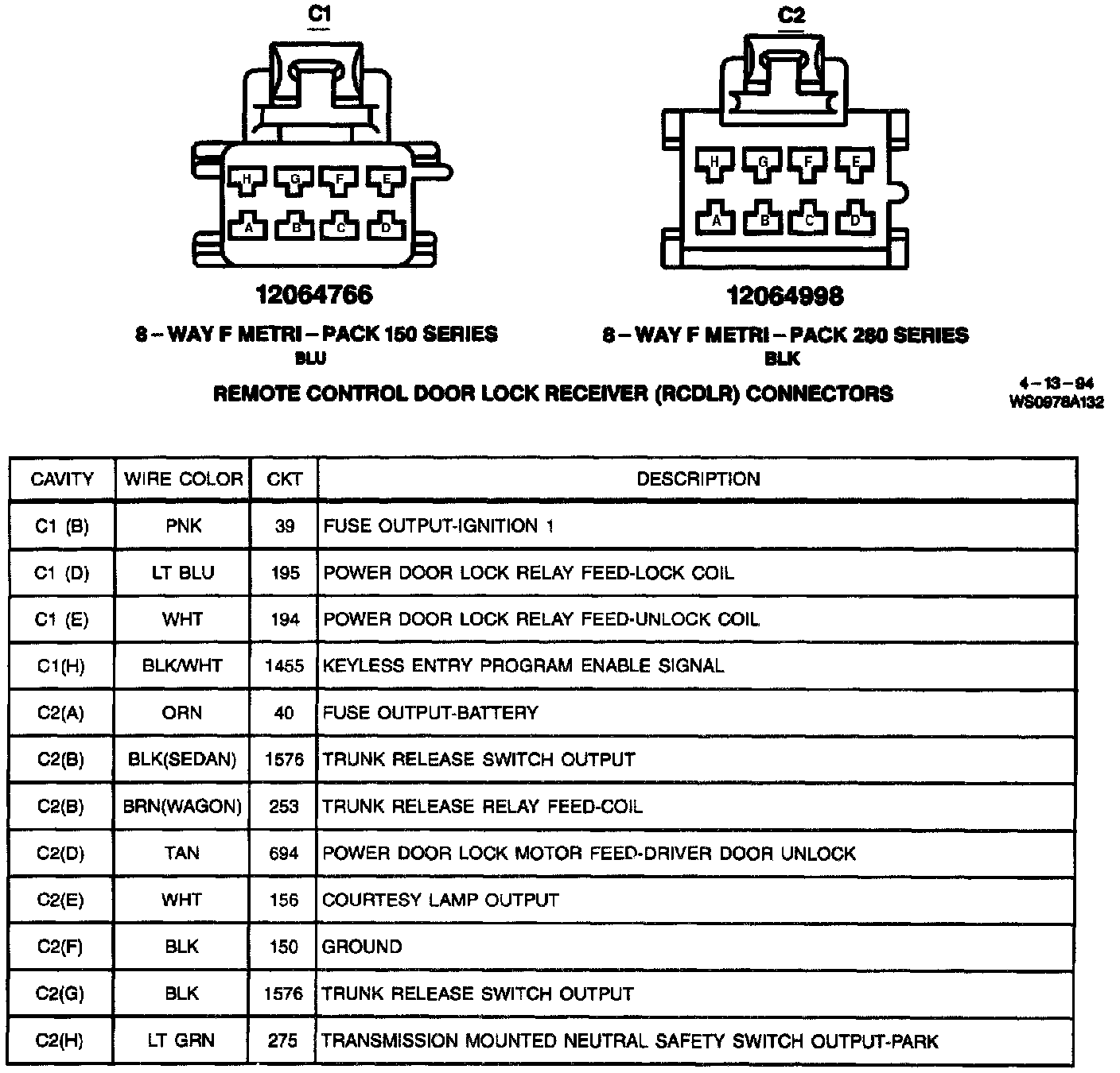 Remote Control Door Lock Receiver (RCDLR) Connectors: