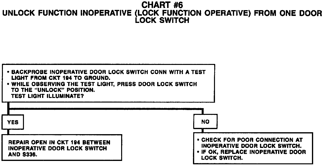 Chart #6 Unlock Function Inoperative (Lock Function Operative):
