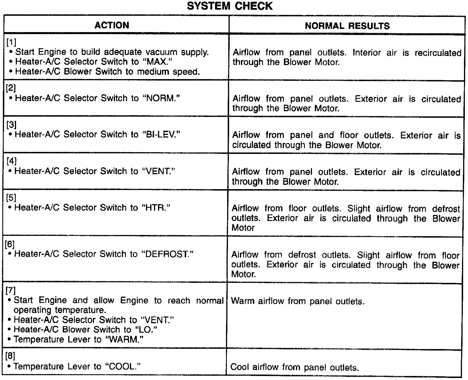 System Check - Air Delivery & Temperature Controls