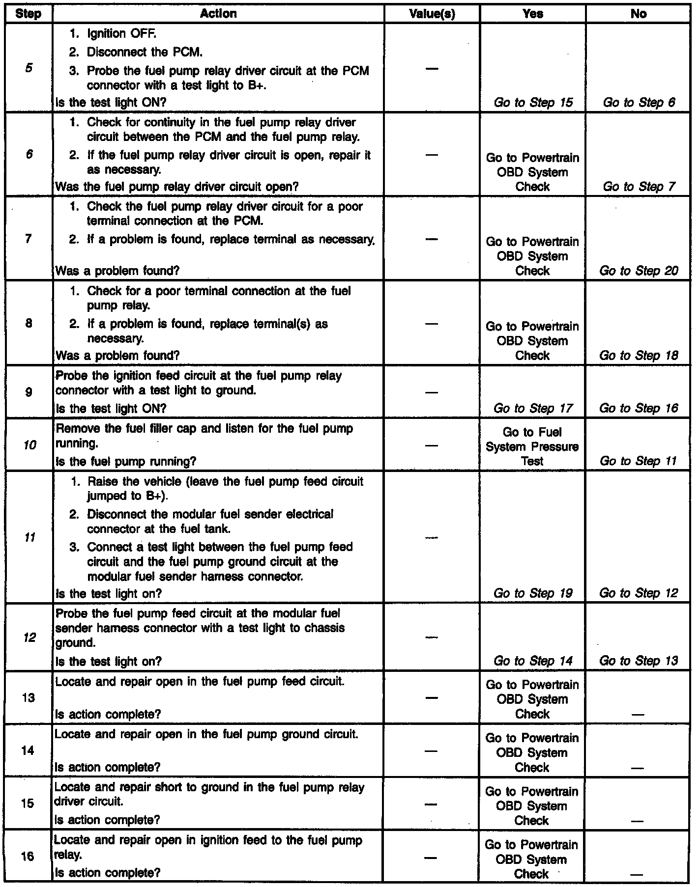 5. Checks the fuel pump driver circuit for a short to ground.