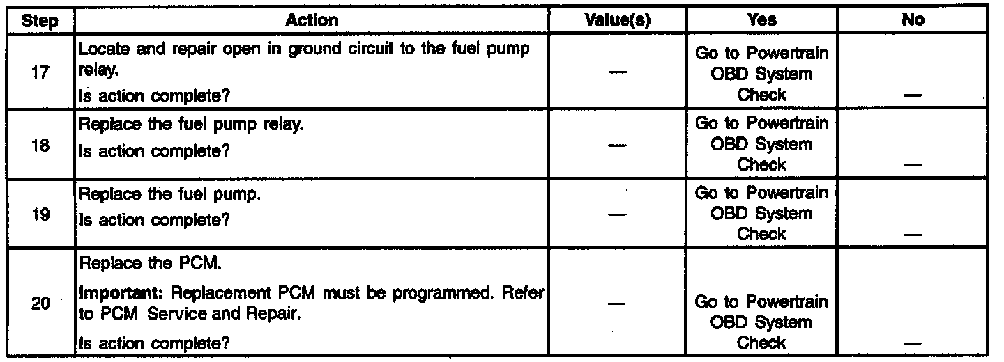 6. Checks the fuel pump driver circuit for an open.
