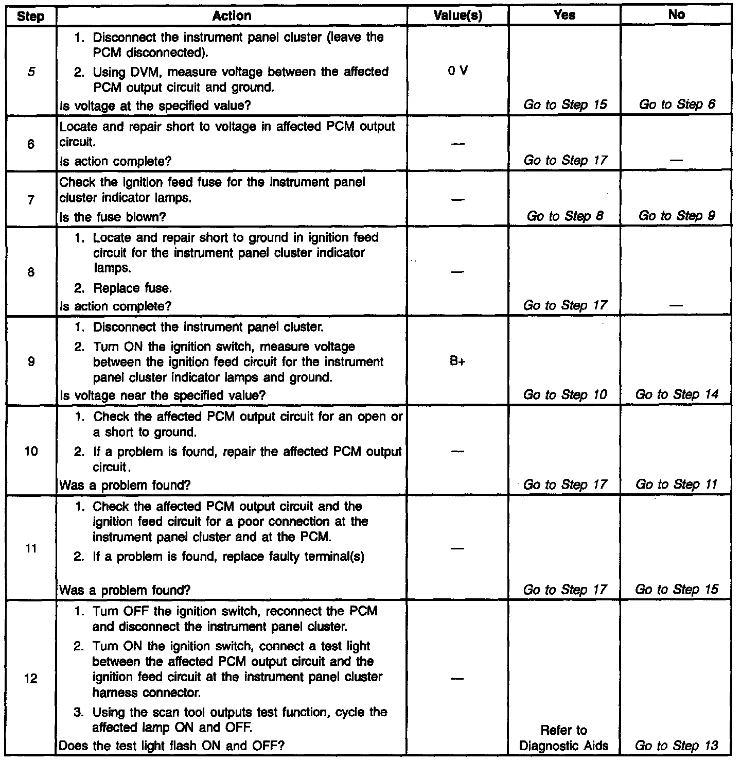 PCM Controlled Warning Lamps Diagnosis
