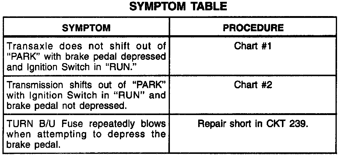 A Symptom Table - Brake Transaxle Shift Interlock