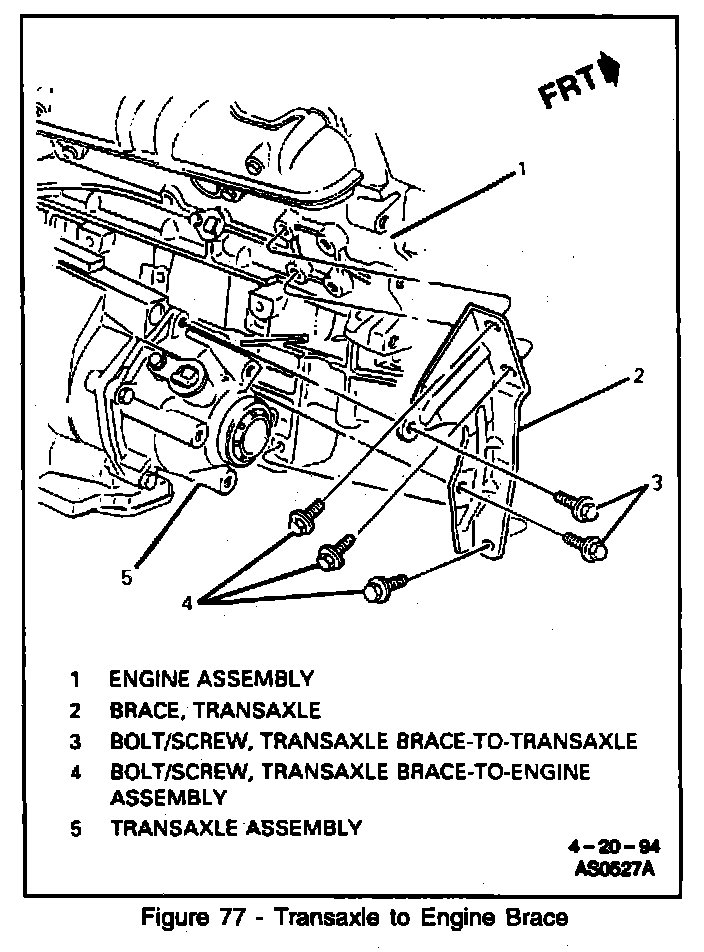 Important: Do not tighten transaxle brace bolts/screws out of sequence. Side load condition to transaxle may occur.