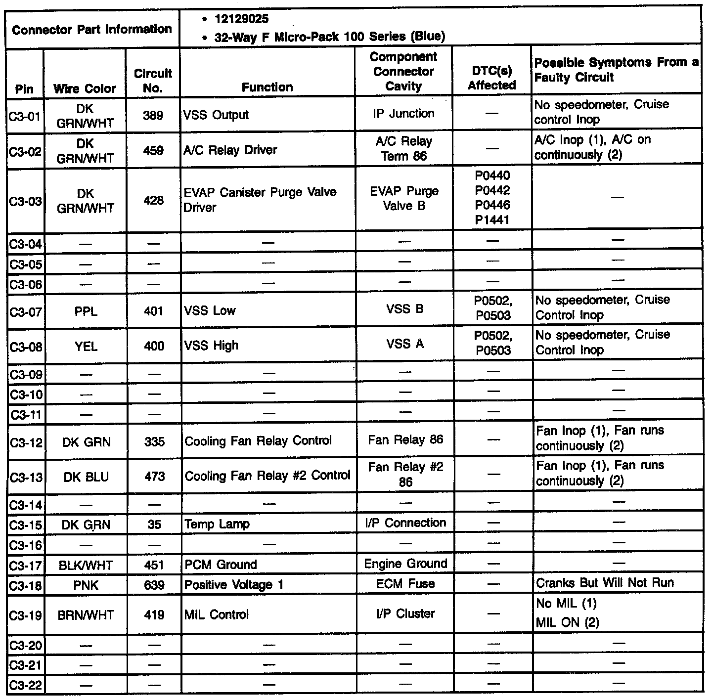 Pins C3-01 Thru C3-22