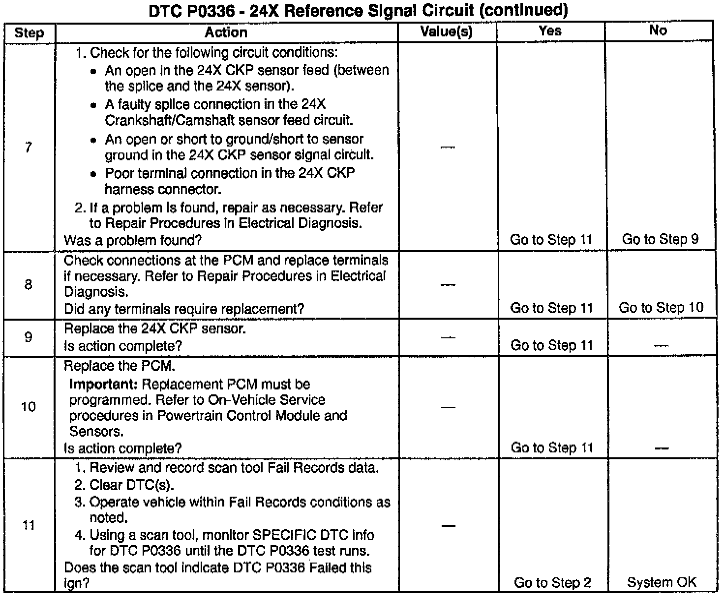 This bulletin is being issued to revise the diagnostic table for DTC P0336-24X Reference Signal Circuit and replace it with the table.