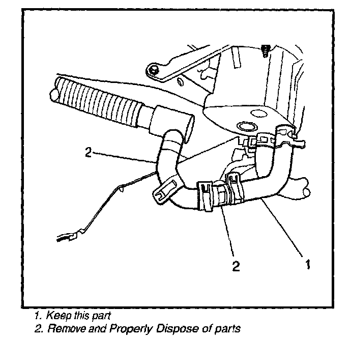 13. Remove and discard the short nylon and rubber tube outlet assembly.