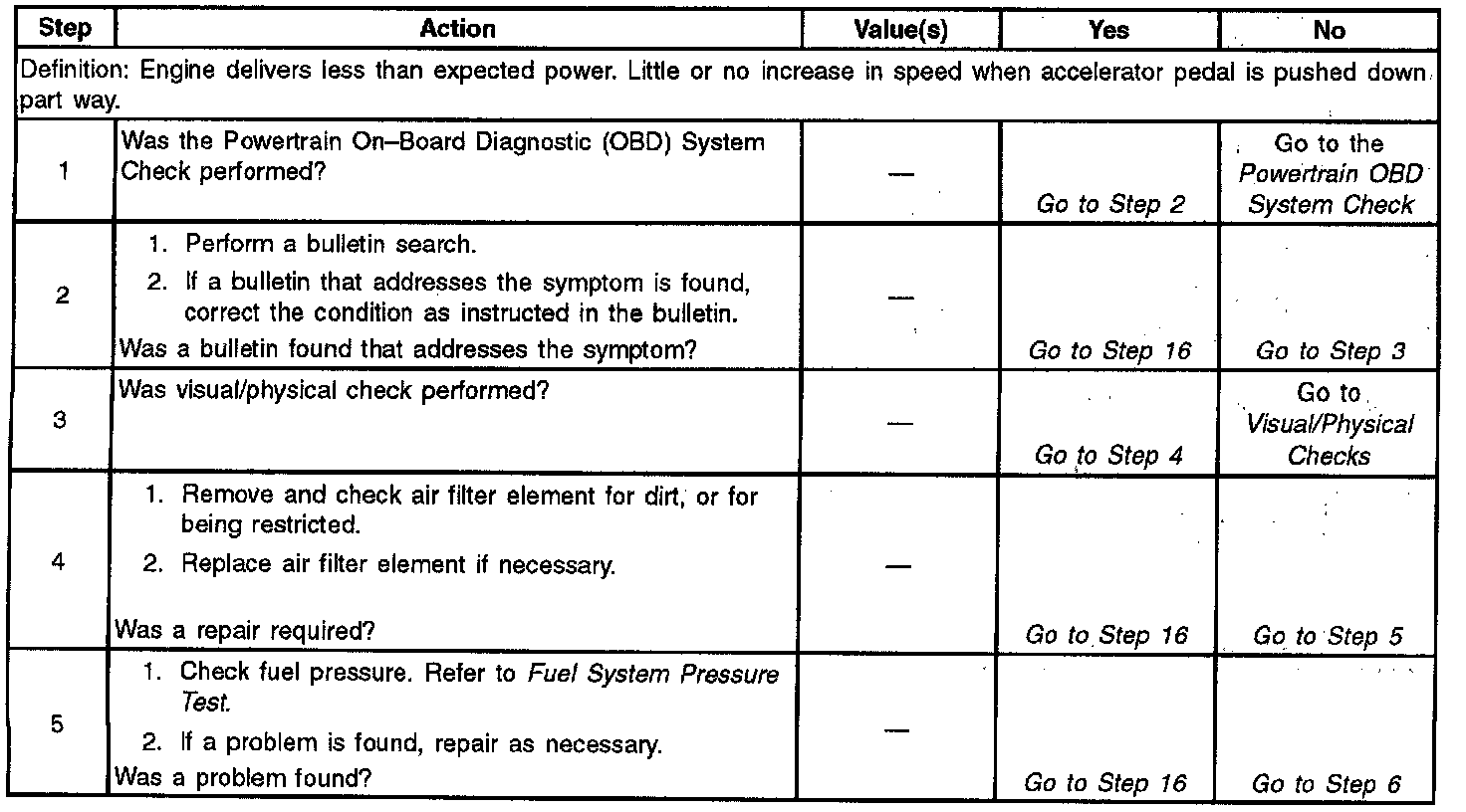 Lack of Power/Sluggish/Spongy/Stumble