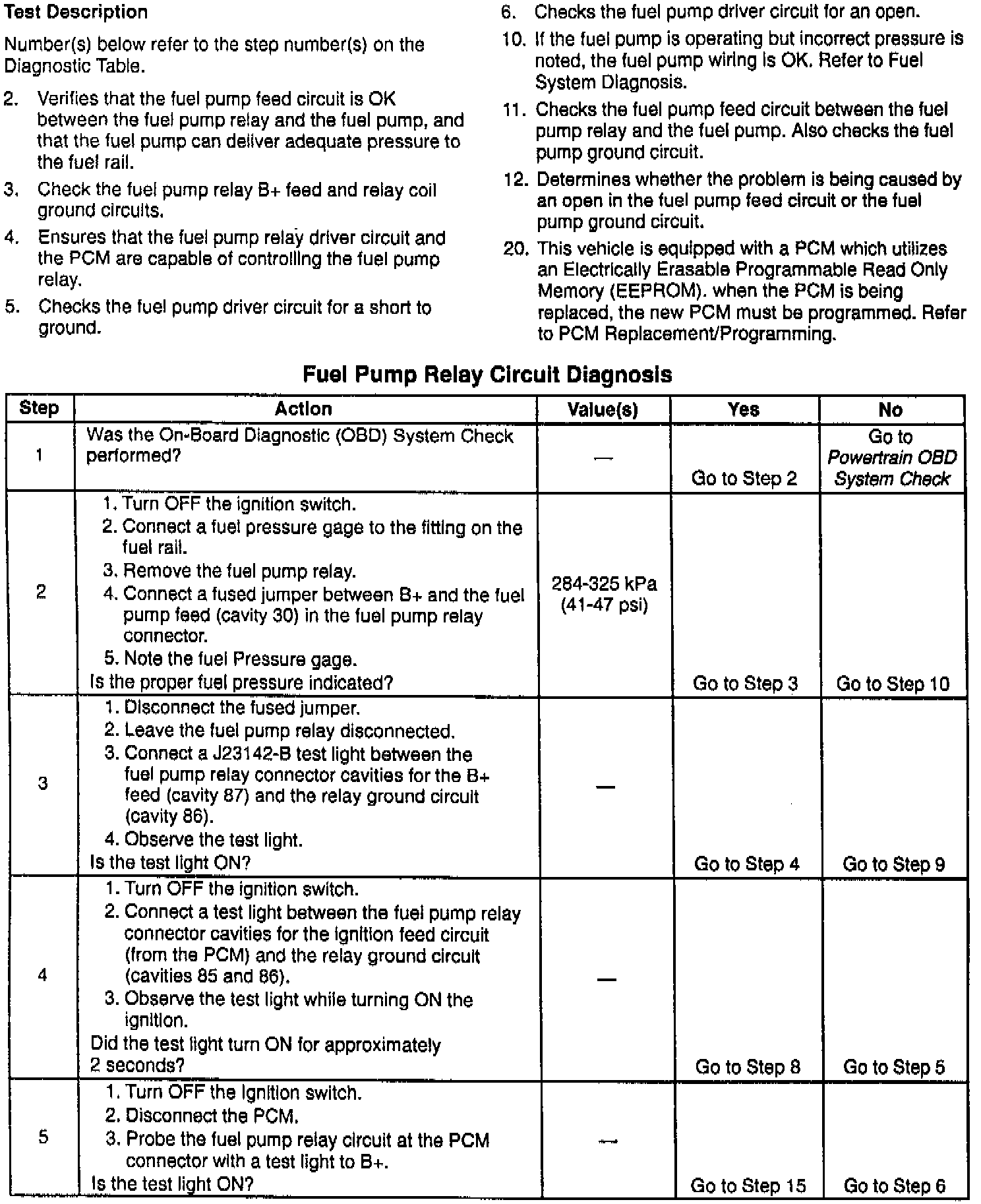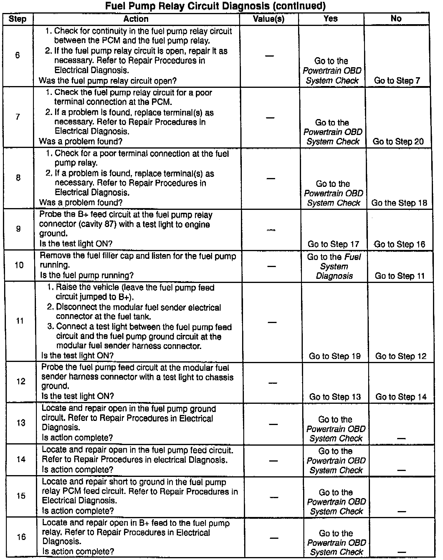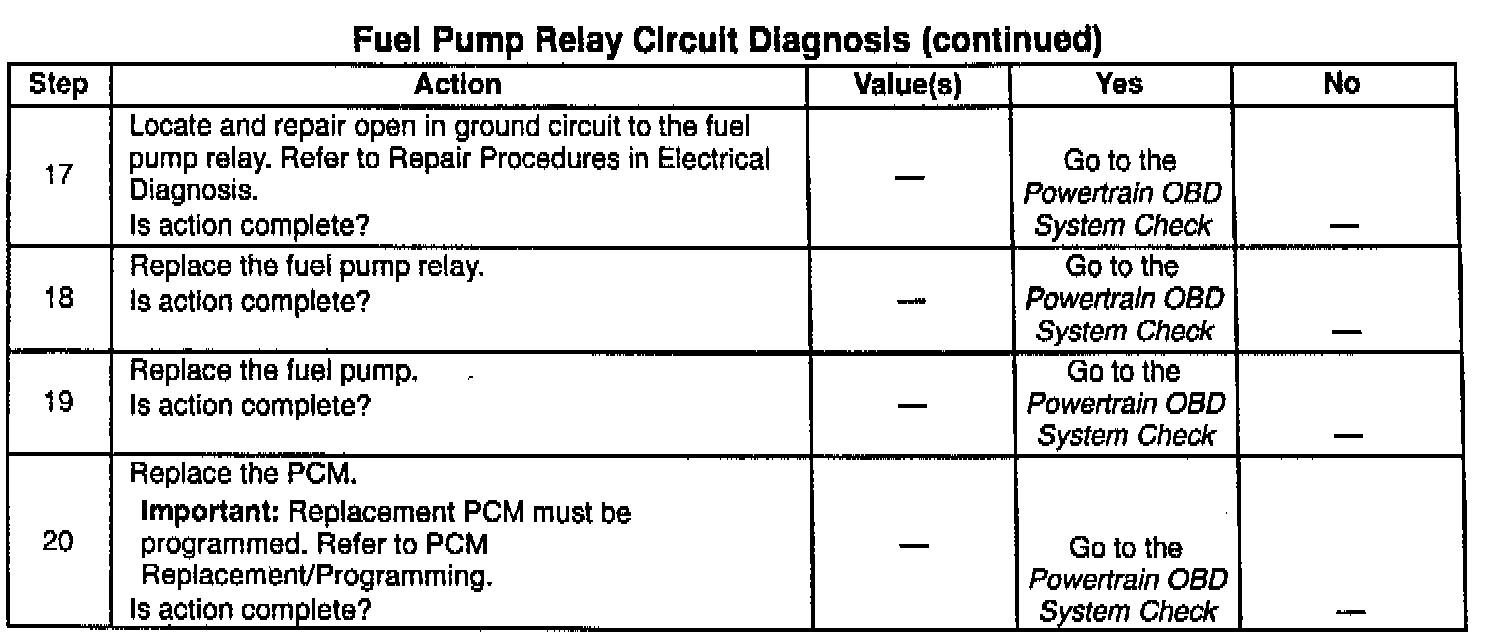 This bulletin is being issued to revise the Fuel Pump Relay Circuit Diagnosis Table. This table replaces the Fuel Pump Relay Circuit Diagnosis Table.
