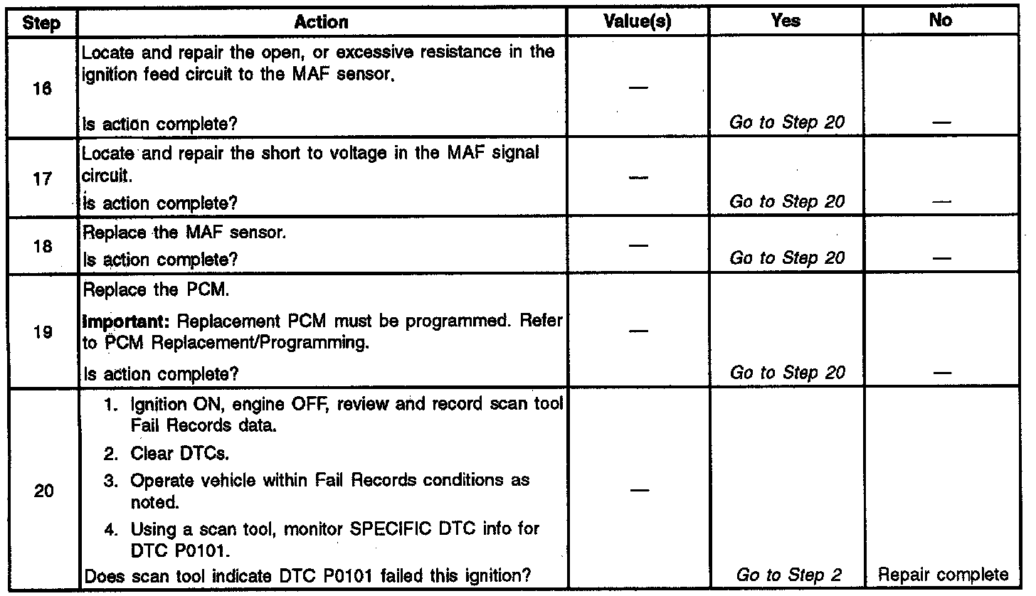 3. Only, if sent here from Engine Cranks but Does Not Run, continue to follow diagnostic table even if DTC P0101 has NOT failed this ignition.