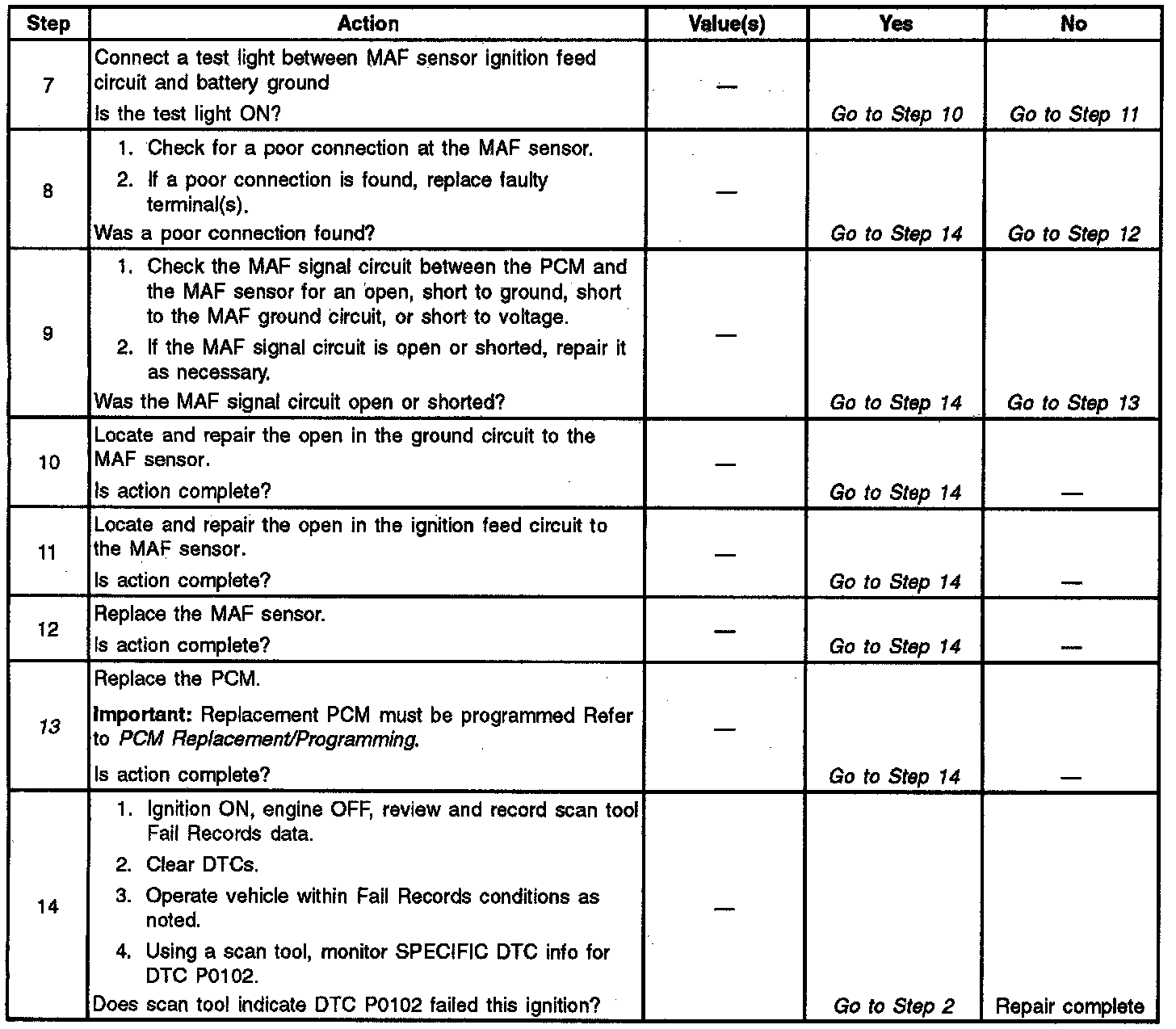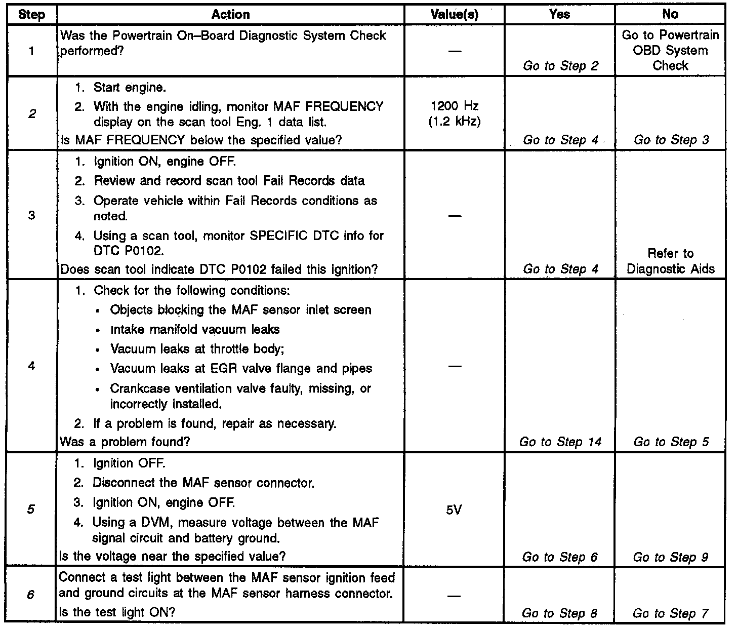 If DTC P0102 cannot be duplicated, the information included in the, Fail Records data can be useful in determining vehicle mileage since the DTC was last set.