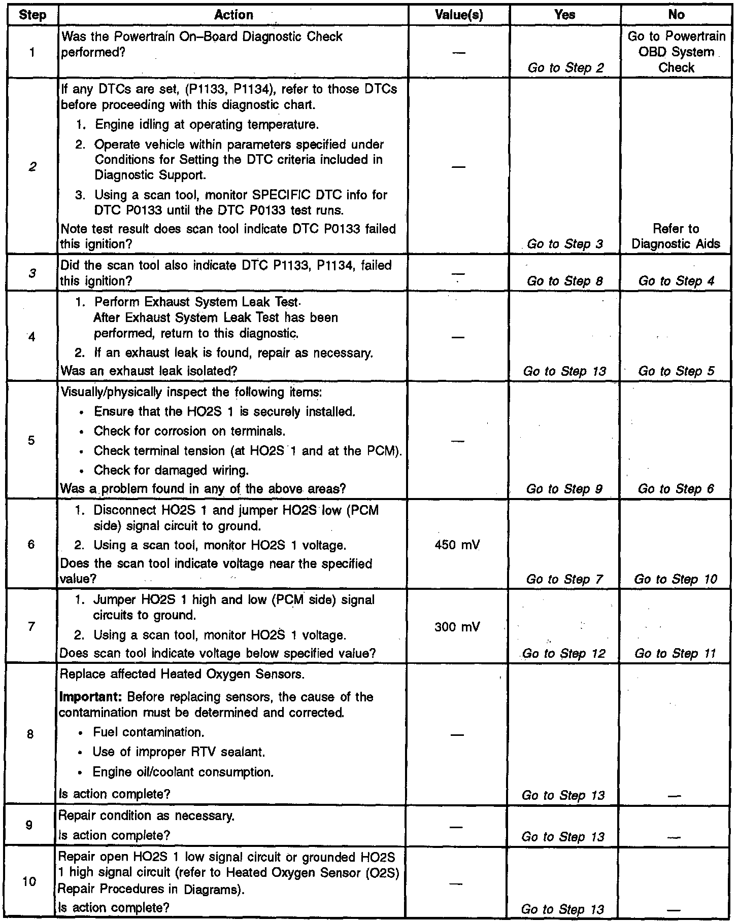 A lean to rich transition is indicated when the HO2S voltage changes from less than 300 mV to greater than 600 mV. A rich to lean transition is indicated when the HO2S voltage changes from more than 600 mV to less than 300 mV. An HO2S that responds too slowly is likely to be faulty and should be replaced.