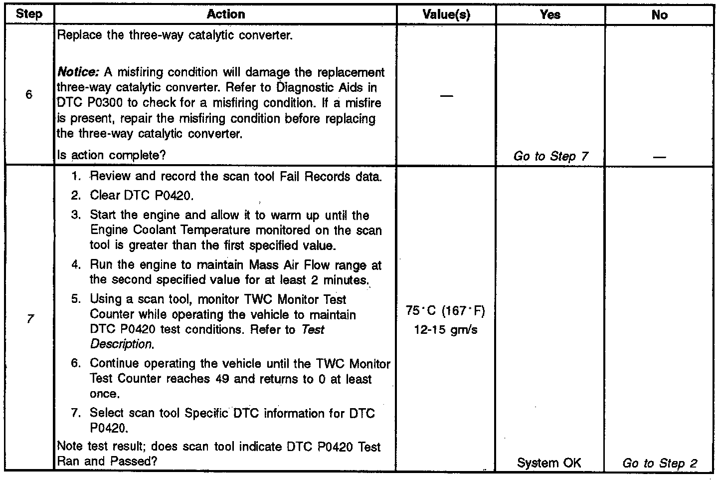 ^ The TWC Monit6r Test Counter display on the scan tool may be used to monitor the progress of the TWC diagnostic. To complete the TWC diagnostic, the counter must be allowed to increment to 49 and roll over to 0 at least once. With a failed TWC, the counter may have to increment to 49 and roll over to 0 three times or more.
