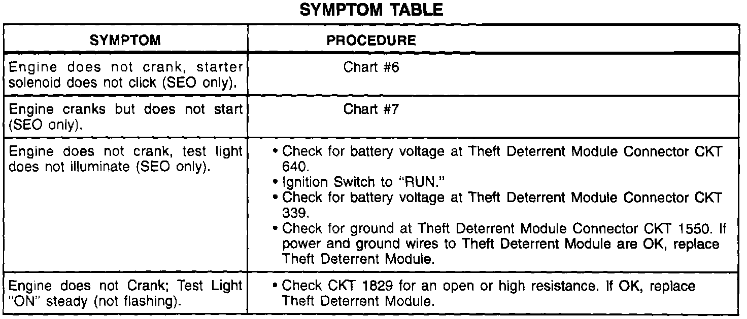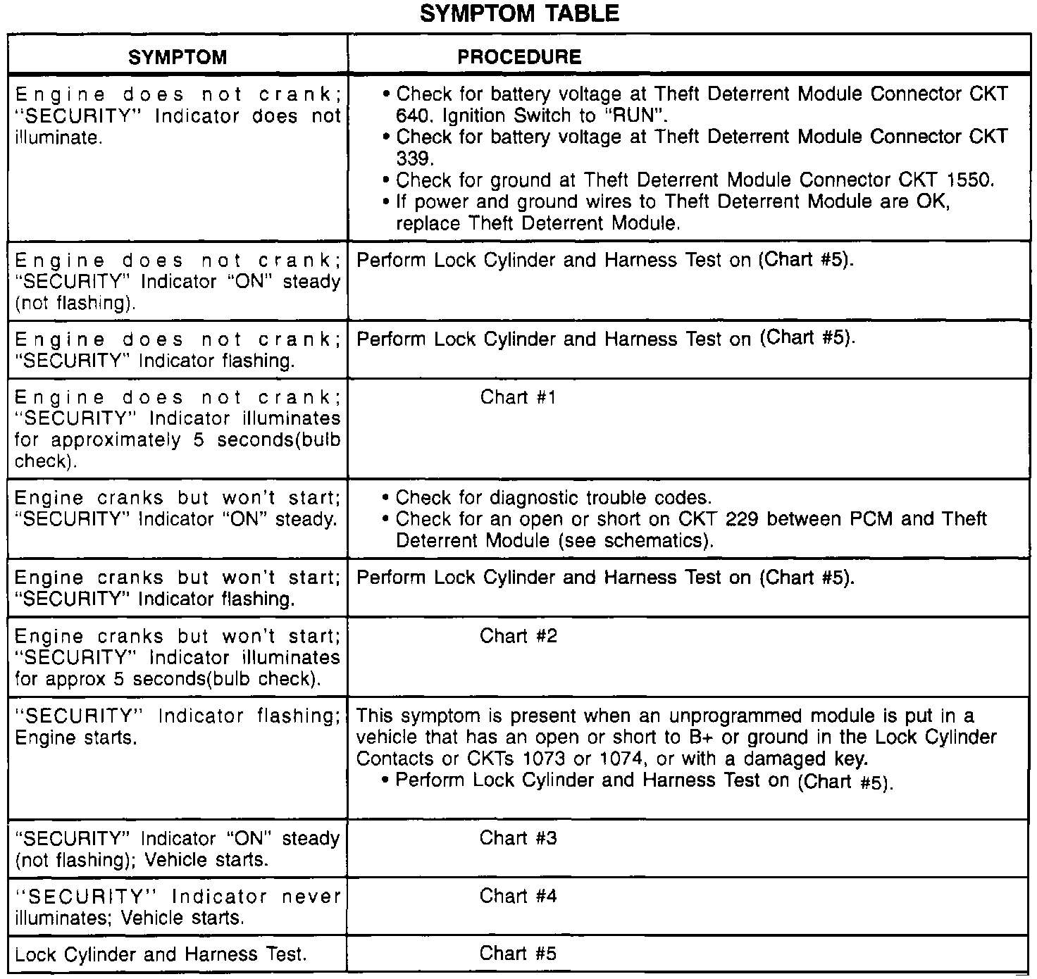 SYMPTOM TABLE