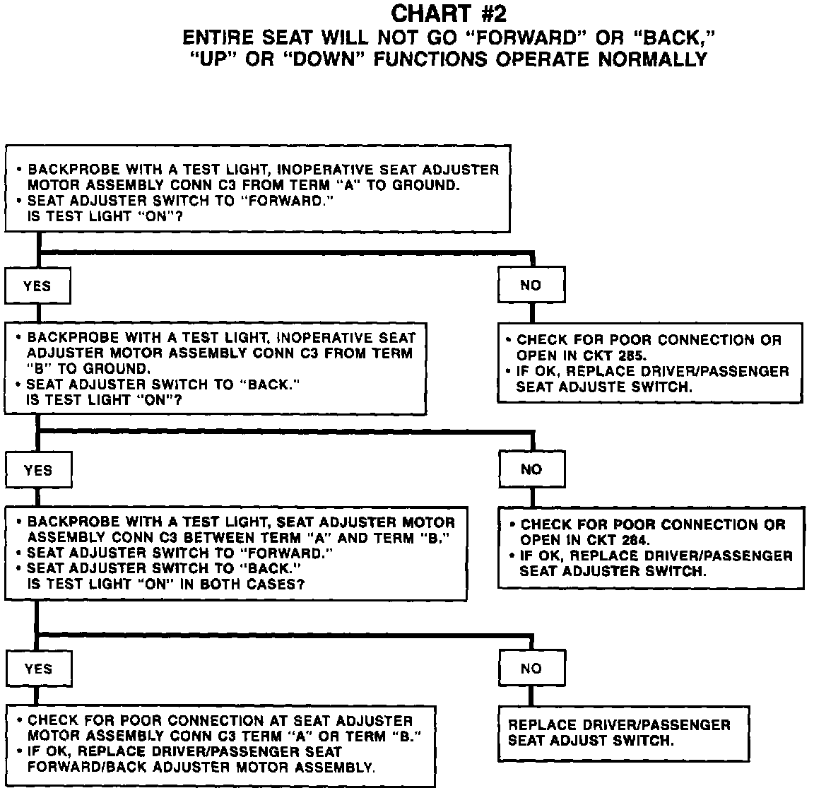 Chart #2 Entire Seat Will Not Go FORWARD/BACK, UP/DOWN Functions Operate Normally: