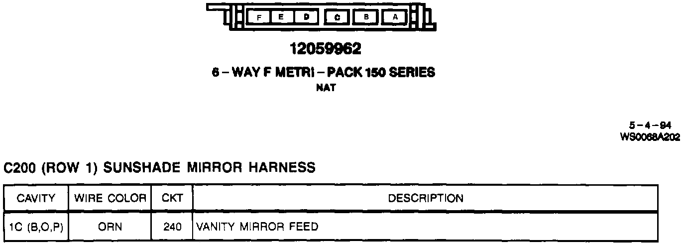 C200 (Row 1): Sunshade Mirror Harness: