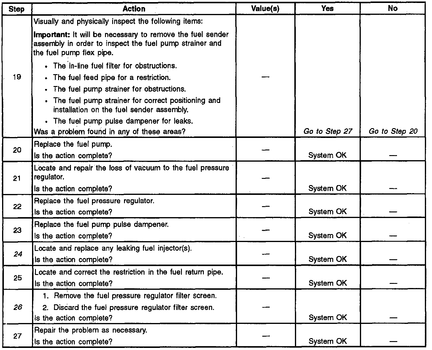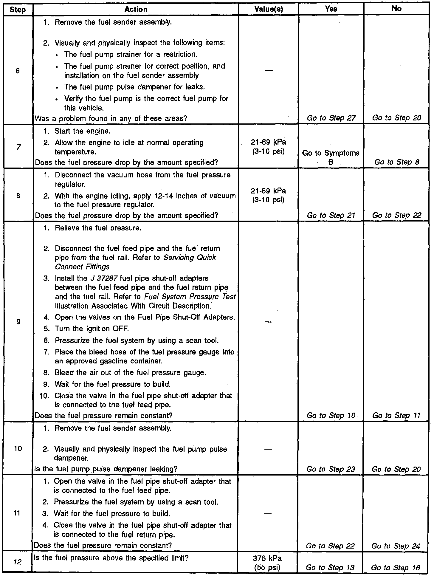 13. This test determines if the high fuel pressure is due to a restricted fuel return pipe or if the high fuel pressure is due to a faulty fuel pressure regulator.
