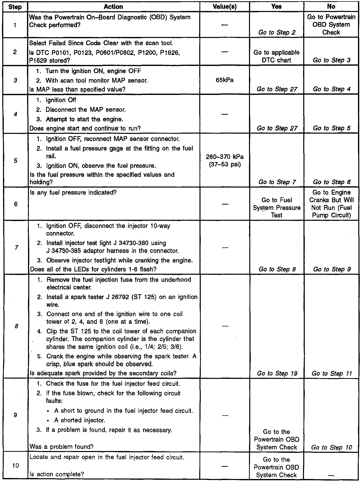 3. A skewed MAP sensor can cause the Barometric Absolute Pressure (BARO) reading to be incorrectly calculated. To check the MAP sensor, compare the MAP/BARO reading on the vehicle to the MAP/BARO reading on a normally operating vehicle. If there is a skewed or stuck map sensor vehicle may not start, compare the MAP reading with that of another vehicle.