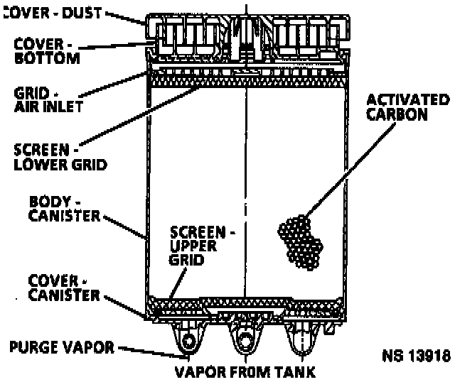 If cracked, leaking raw fuel, or damaged, replace canister.