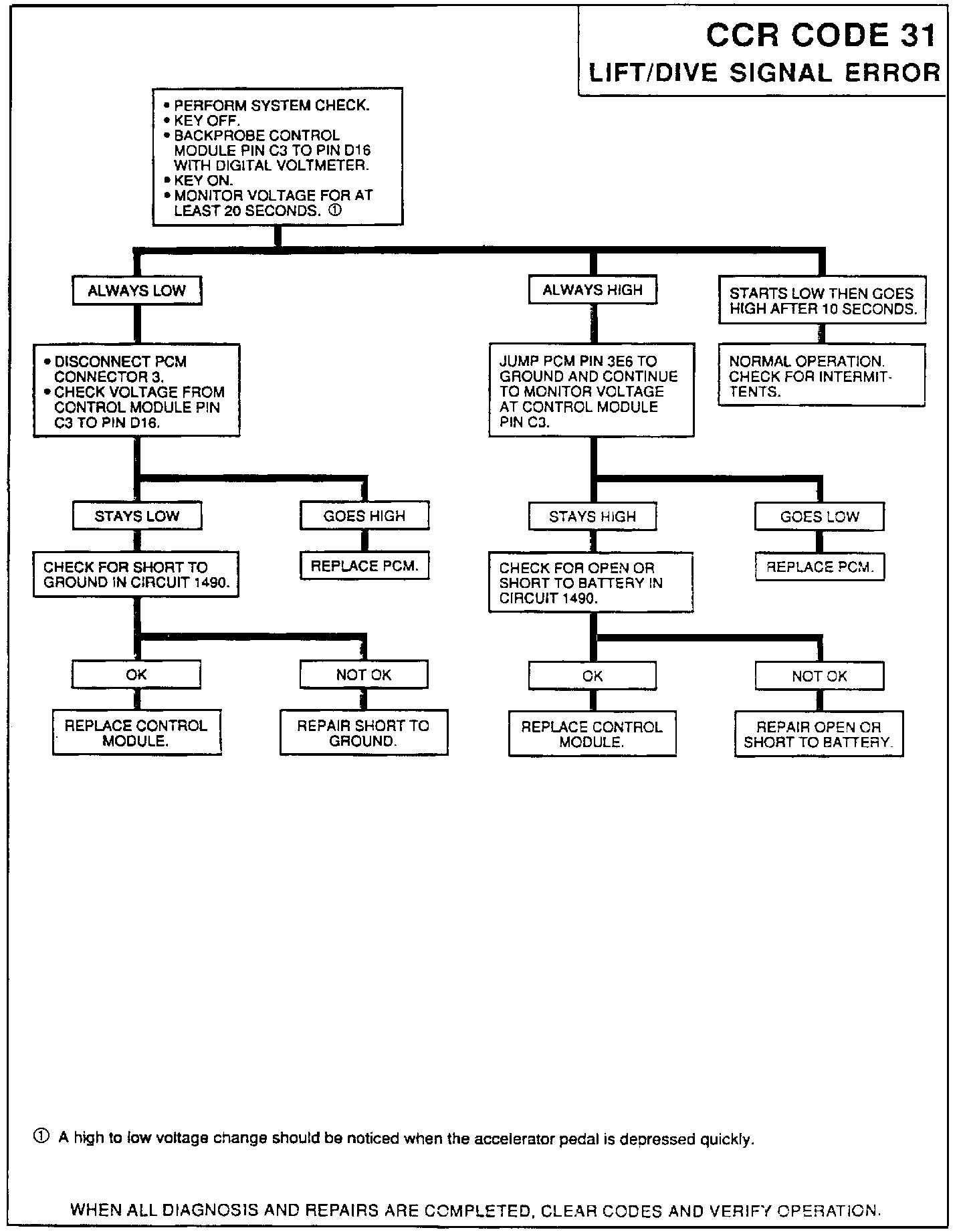The Control Module will monitor the lift/dive signal which is pulled low then high by the PCM.
