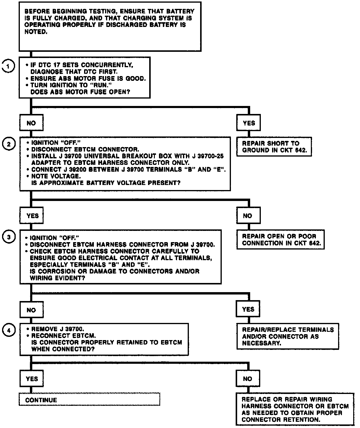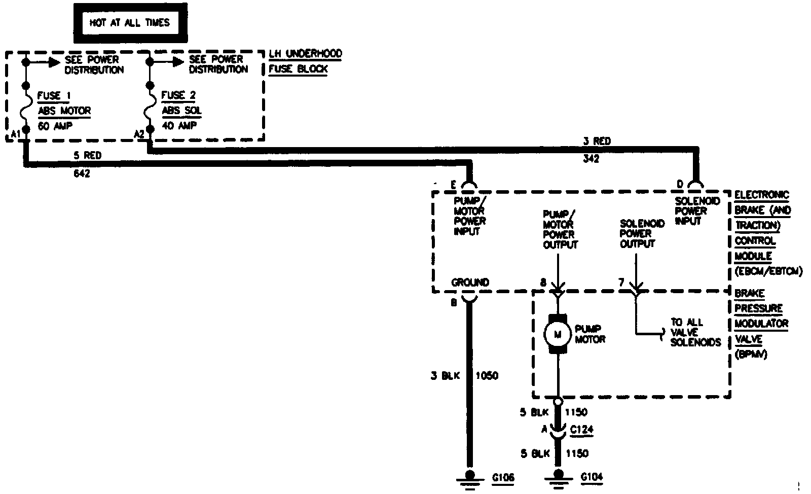 1. Checks that ABS Motor Fuse feeding the EBCM/EBTCM Motor Relay circuit is good.