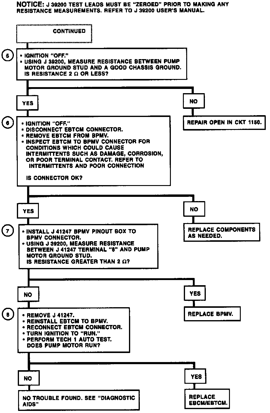 ^ Pump motor turns too slowly (may be due to corroded motor or corrosion in pump motor circuit connection between EBCM/EBTCM and BPMV).