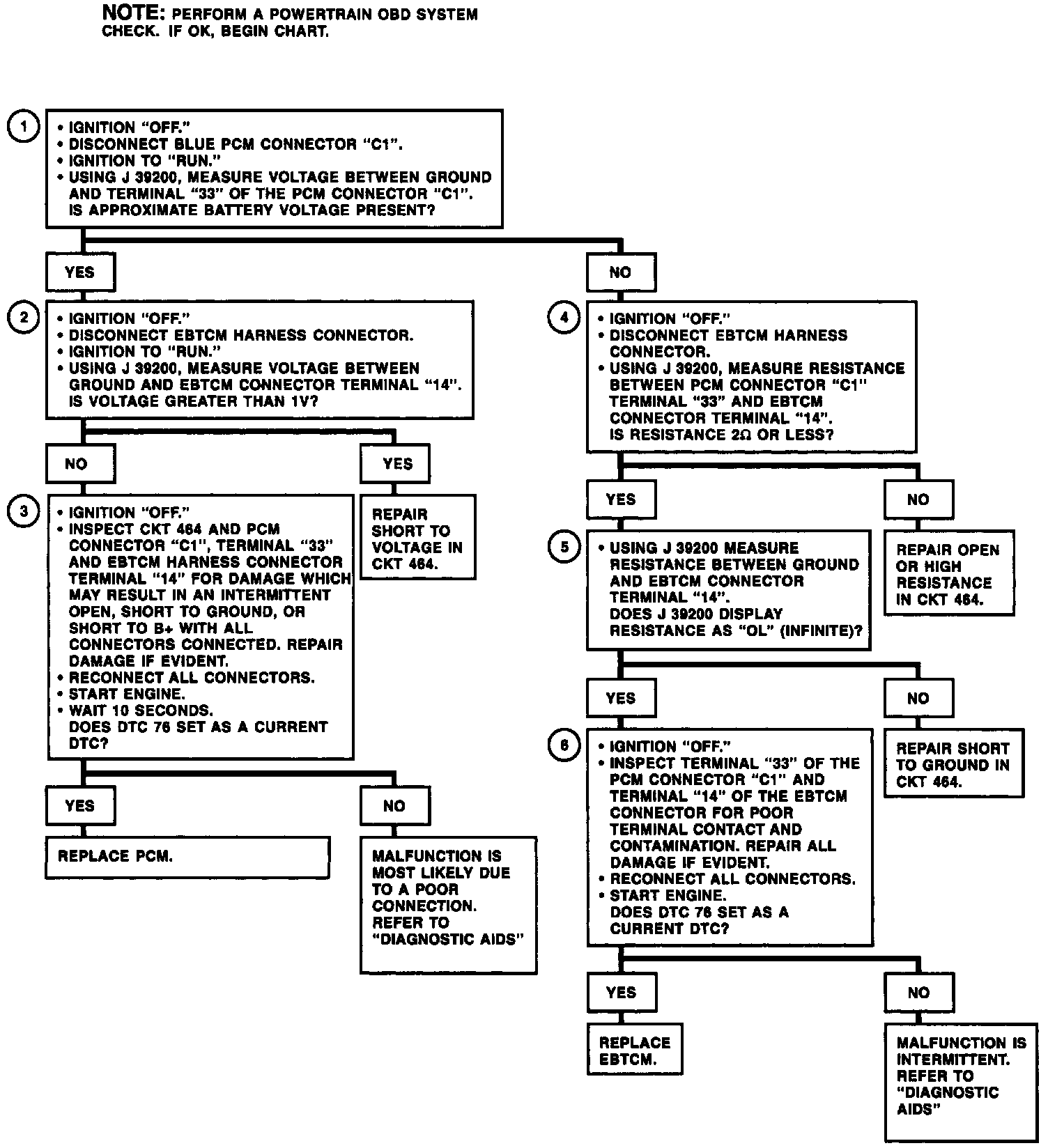 DTC 76 can be set anytime when ignition voltage is present. A malfunction exists if the PWM signal is out of range or no signal is received for a period of 7.0 seconds.