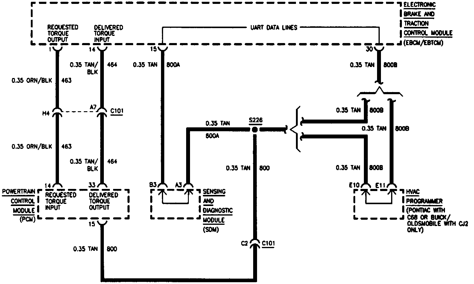 Traction control is simultaneously controlled by the EBTCM and the PCM. The PCM sends a "DELIVERED TORQUE" message via a Pulse Width Modulated (PWM) signal to the EBTCM confirming the delivered torque level for proper traction control system operation.
