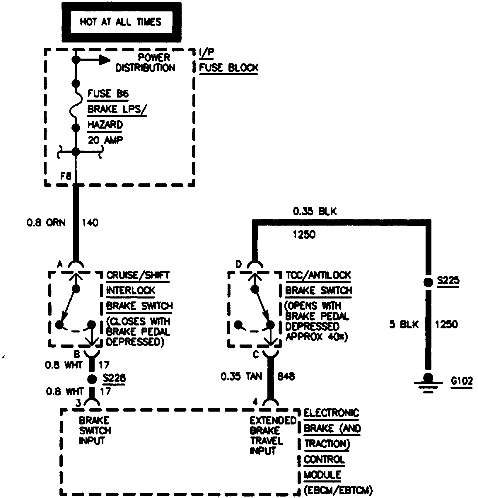 DTC 91 is set after the Cruise/Shift Interlock/B rake Switch remains open for three deceleration cycles. This fault occurs when: The Power Distribution system does not supply battery voltage to CKT 140. Fuse B6 (Brake LPS/Hazard) is open. Either CKT 17 or CKT 140 has a wiring problem, terminal corrosion, or poor connections. The Cruise/Shift Interlock/Brake Switch is malfunctioning. There is a malfunction in the EBTCM.
