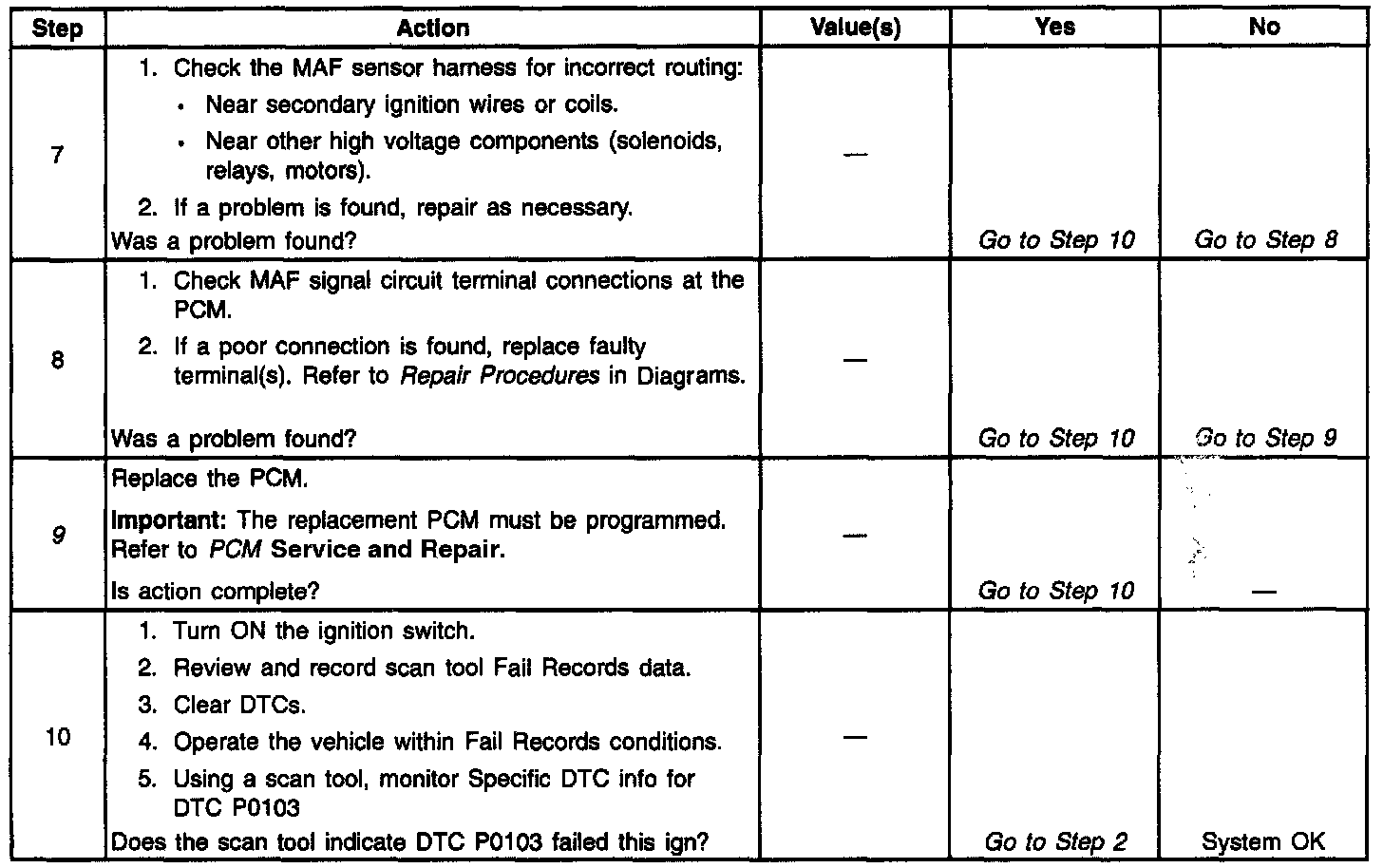 If DTC P0103 cannot be duplicated, the information included in the Fail Records data can be useful in determining vehicle mileage since the DTC was last set.