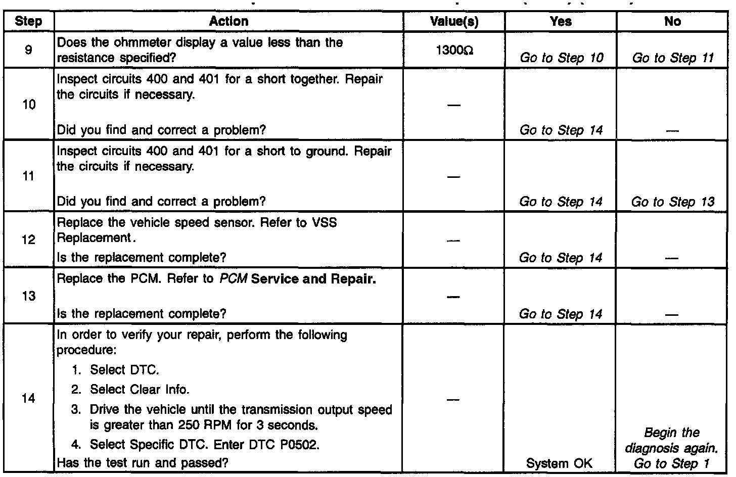 DTC P0502 Vehicle Speed Sensor Circuit Low Input (2 Of 2):