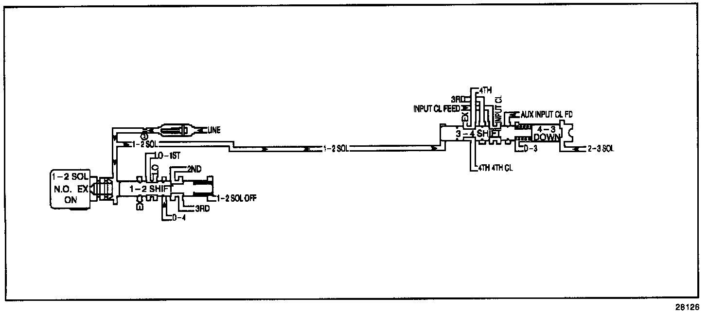 ^ The PCM commands 1st gear and the speed ratio is less than 106 for 2 seconds (the shift valve is stuck in the OFF position).