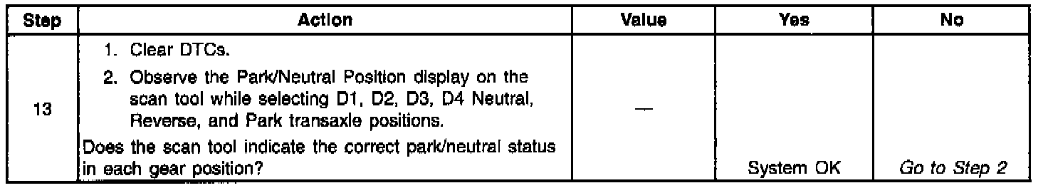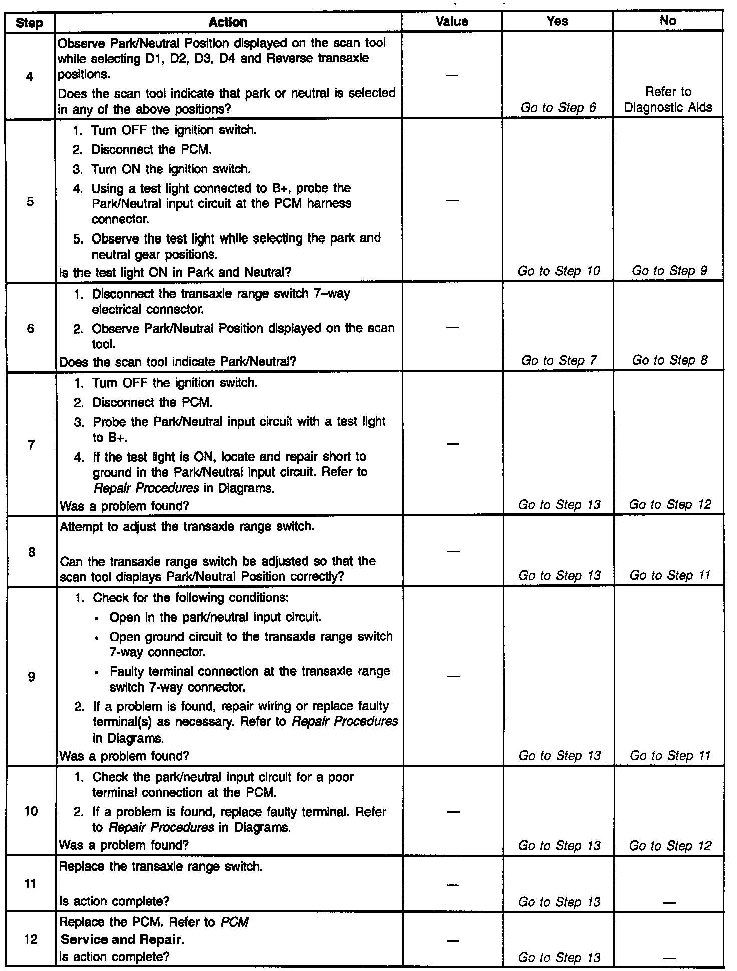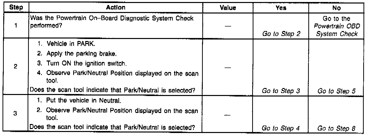 The PCM supplies 12 volts to the PNP input circuit through a current limiting resistor. The PCM senses a closed switch (Park or Neutral selected) when the voltage on the PNP input circuit drops below 1 volt.